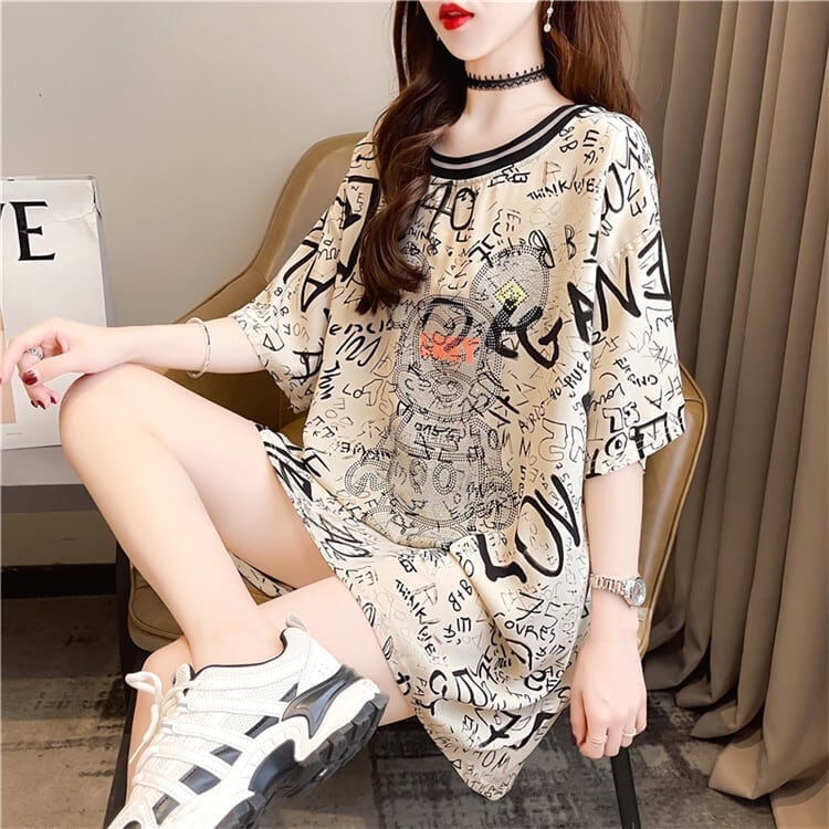 着?せ 立体のリボン バックオープン ロング Tシャツ ゆったり半袖 <F-2920>