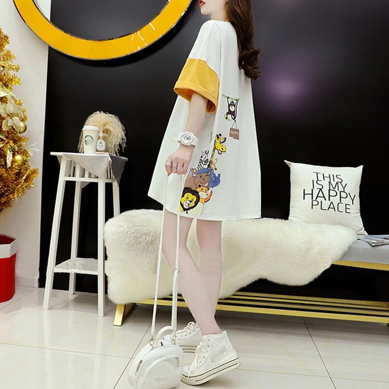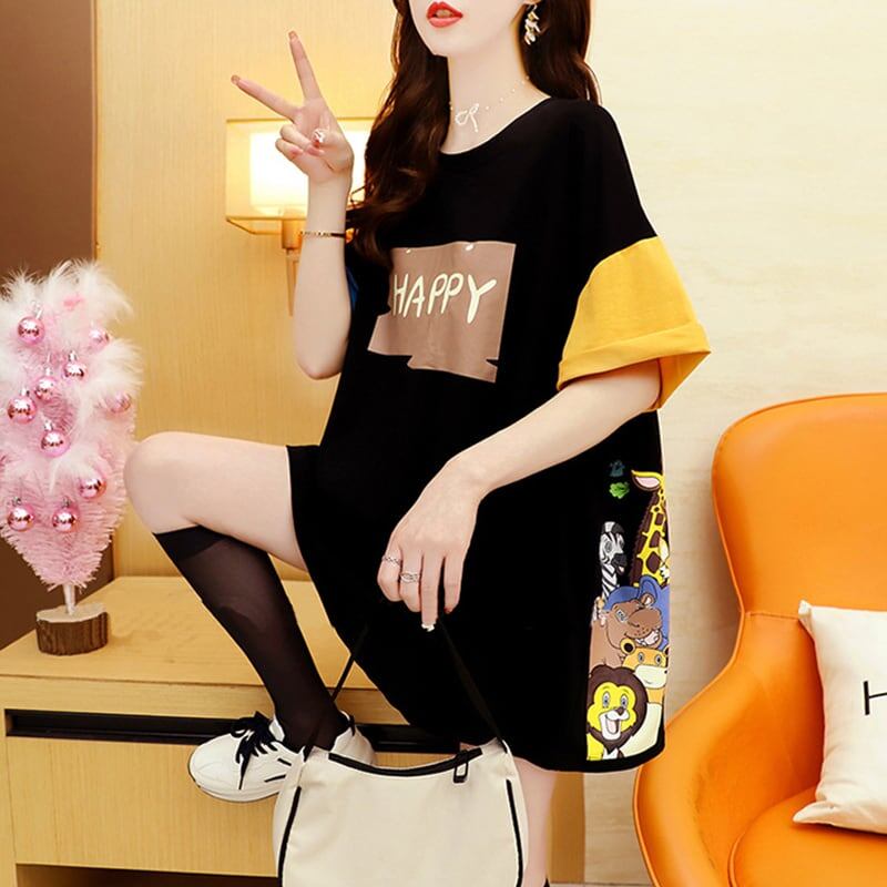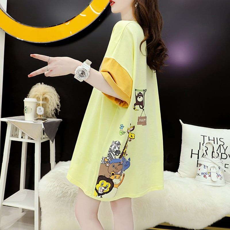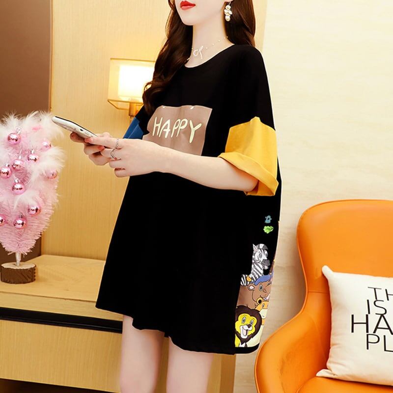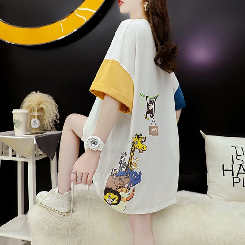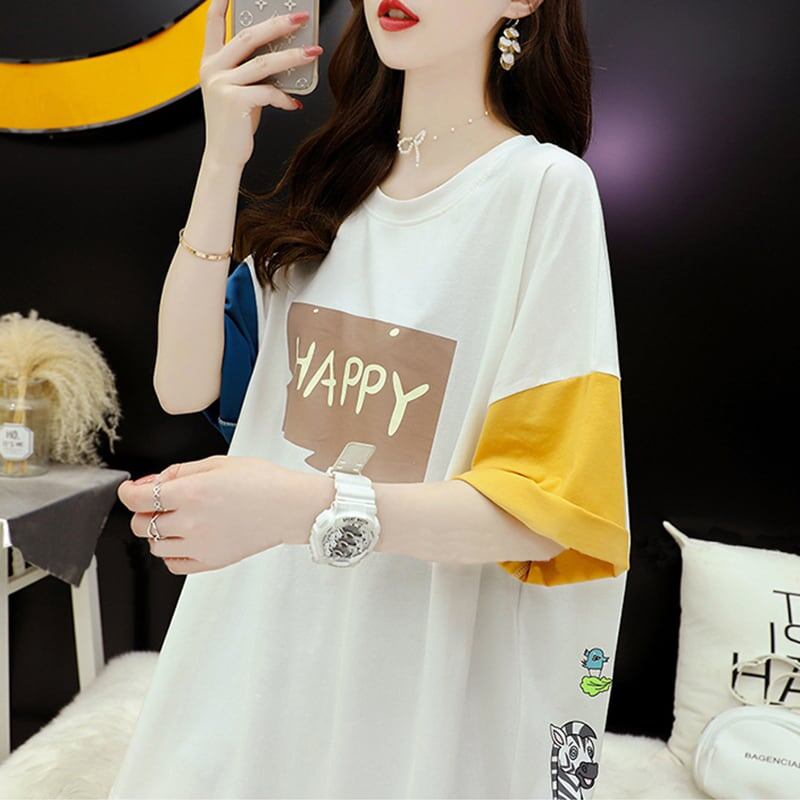 話題沸騰中 配色 オシャレ ゆったり 体型カバー 着?せ 半袖 Tシャツ <F-1969>