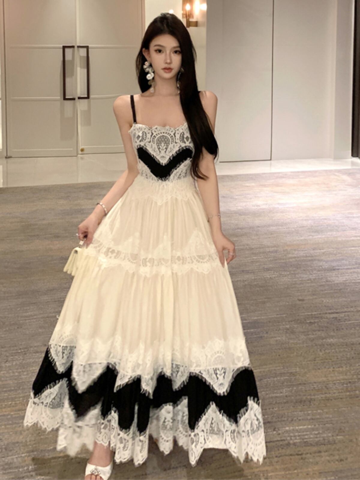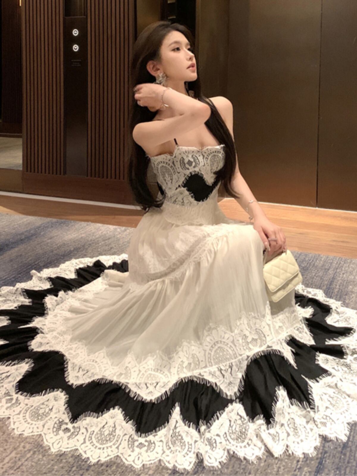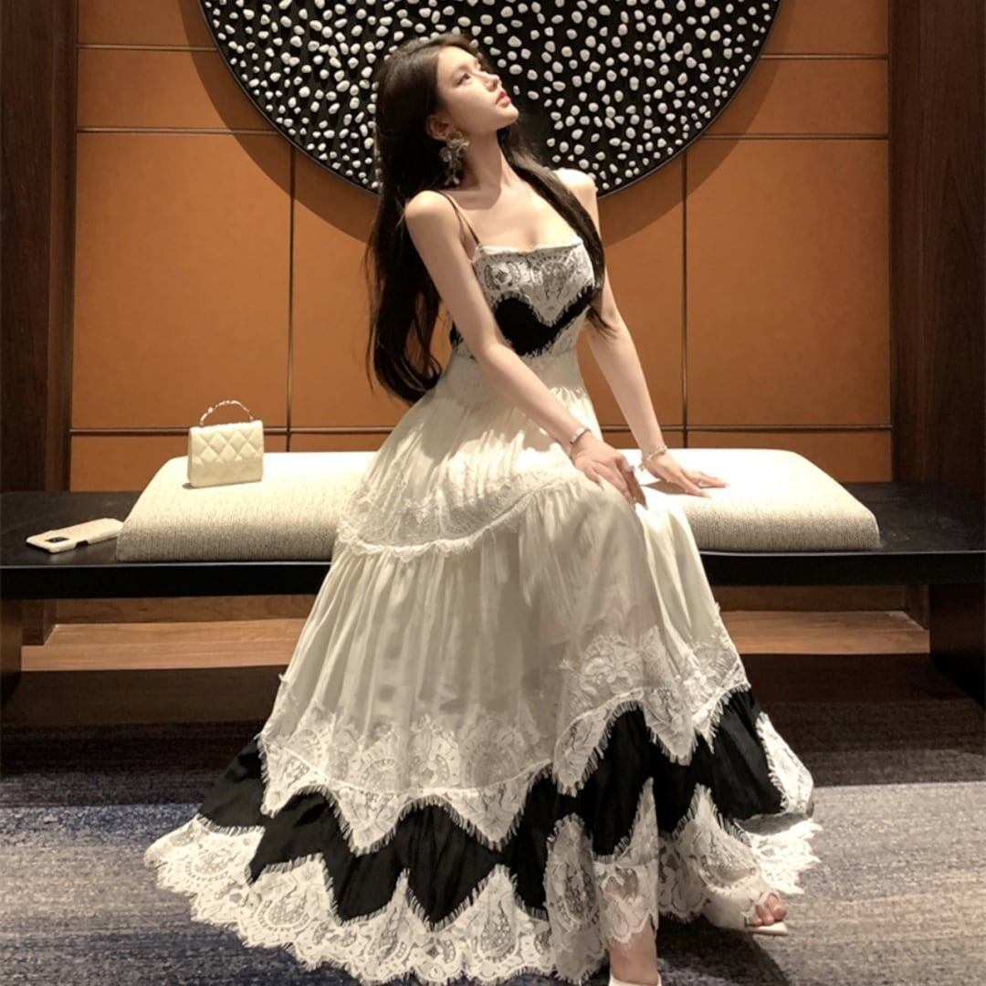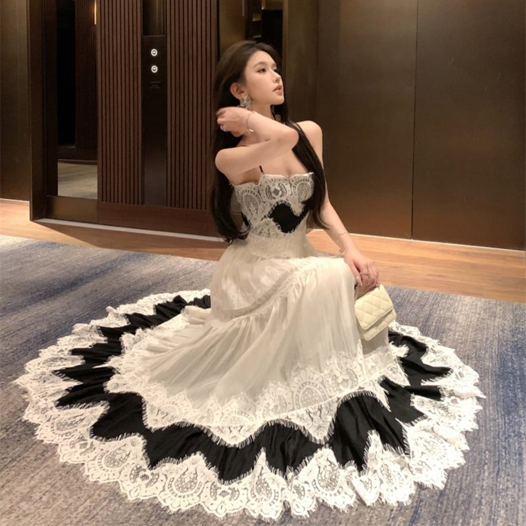 スウィート 上品 エレガント レース 切り替え ワンピース<F-11771>