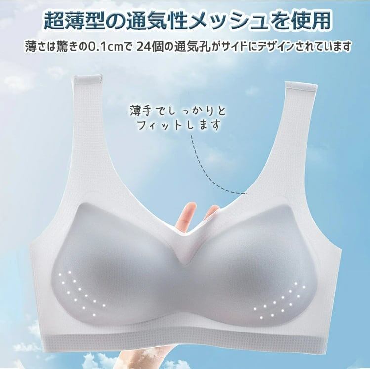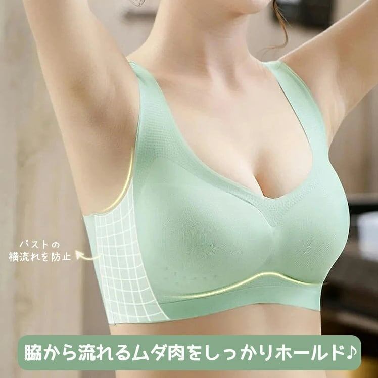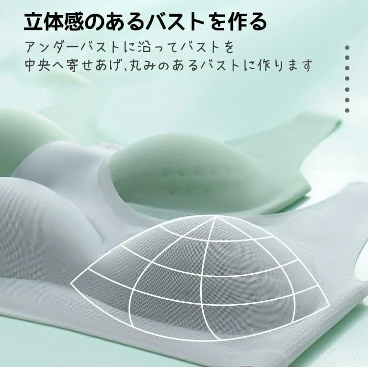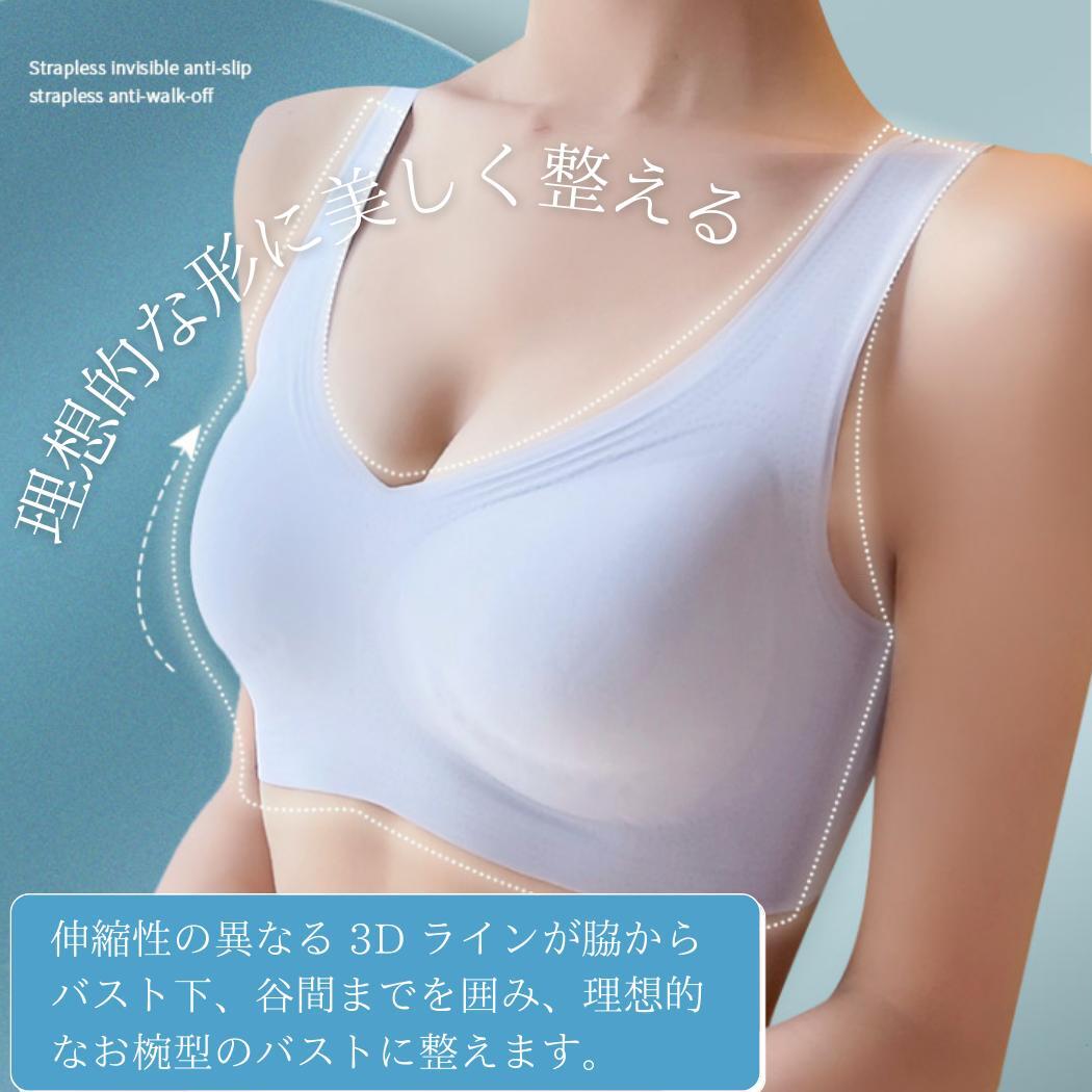 【バストをケア】カップには3D立体綿を使用しているので、胸部を圧迫しません。バストの位置が動かないよう、自然に固定します。バストをリラックスした状態にし、離れたり垂れたりしないよう、しっかりと形をキープします。ショルダーストラップの幅の広いデザインにより、肩に負担をかけません。