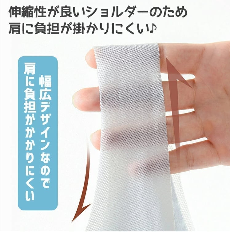 【自由に呼吸】肌にやさしいやわらかな生地を、背中と肩の部分にはメッシュの生地を使用しているので、お肌に自由に呼吸をさせ、熱い夏でも汗によるムレを防止します。