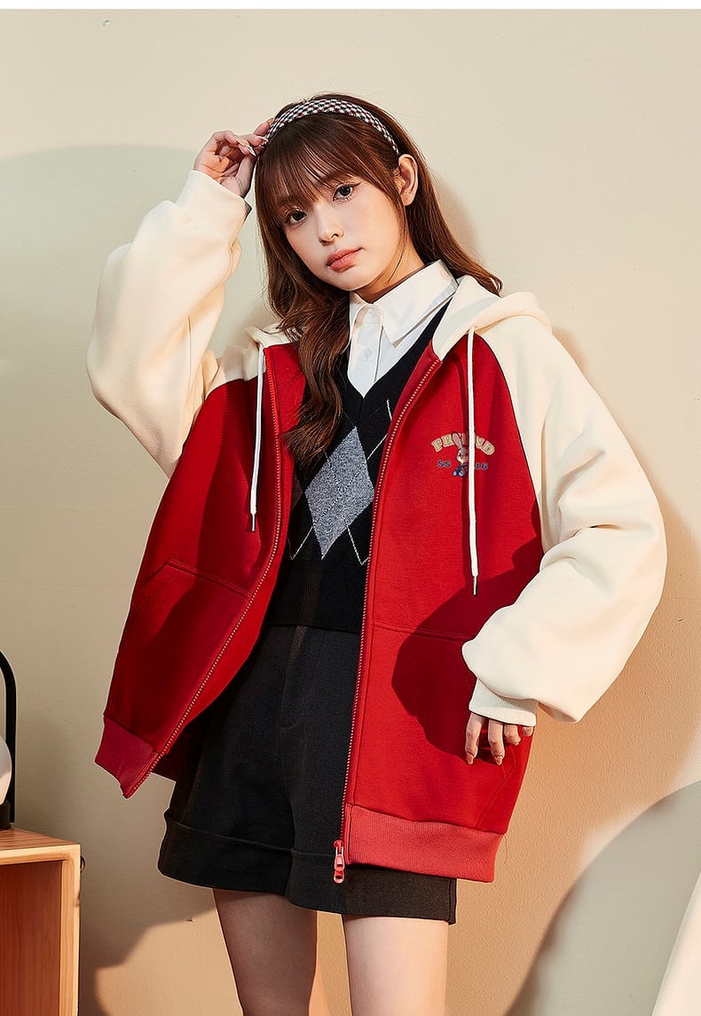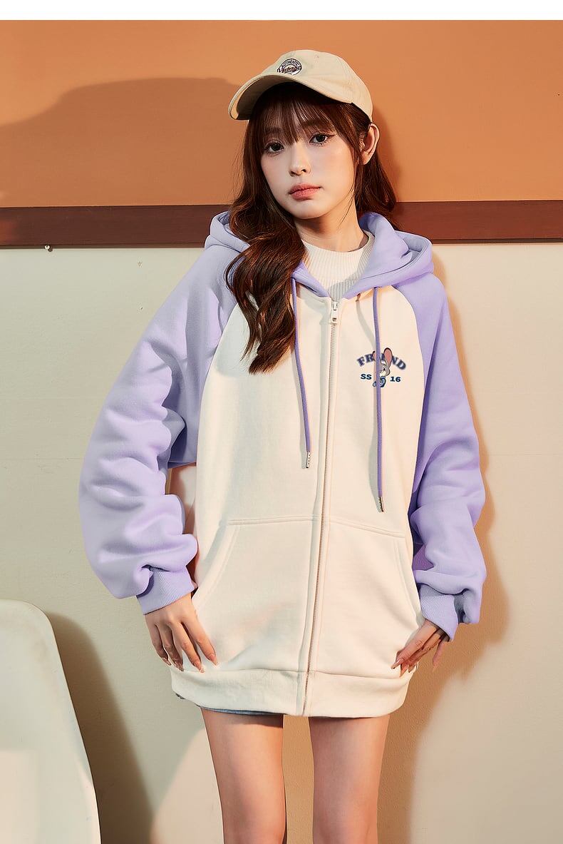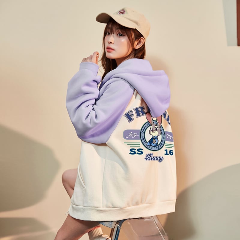 大人可愛いウサギちゃんロゴフルジップパーカー全2色 裏起毛トップス <F-4522>