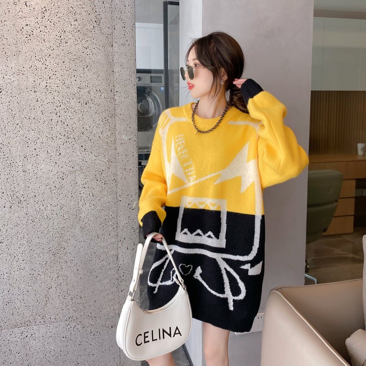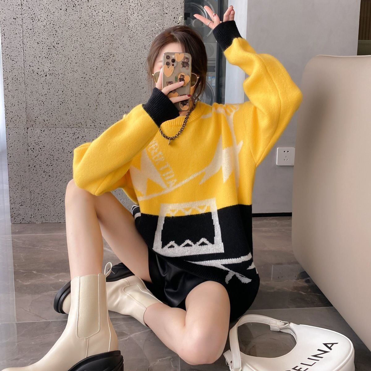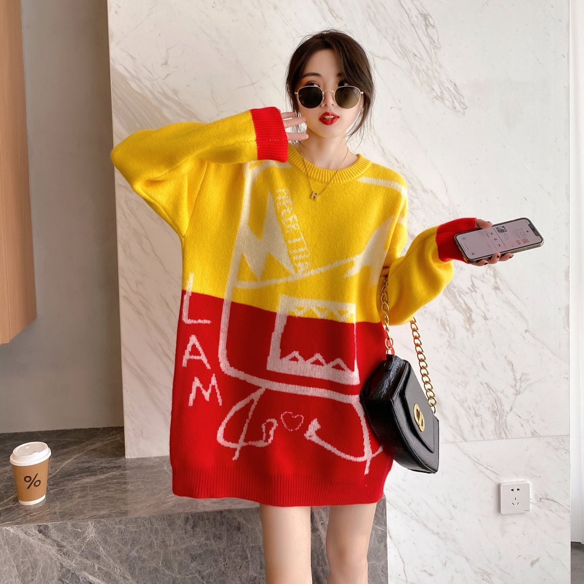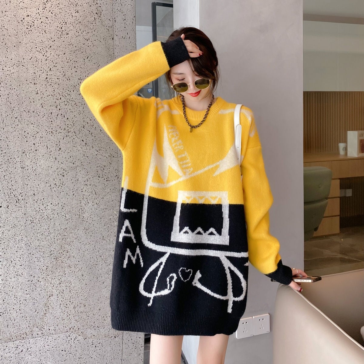 着?せカラーマッチングゆったり厚手ニットセーター全2色<F-4498>