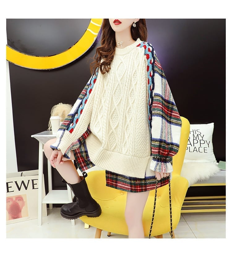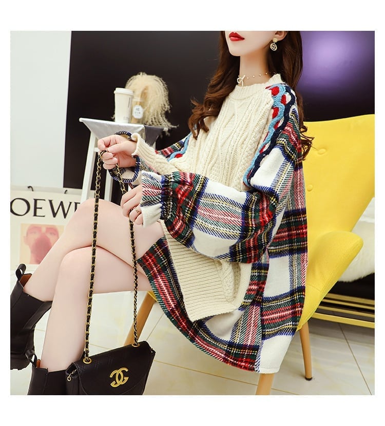 着?せレイヤード風 切り替えニットセーター二色あり<F-4093>