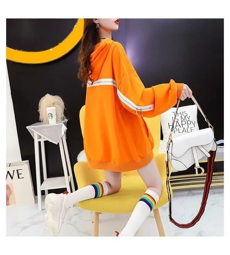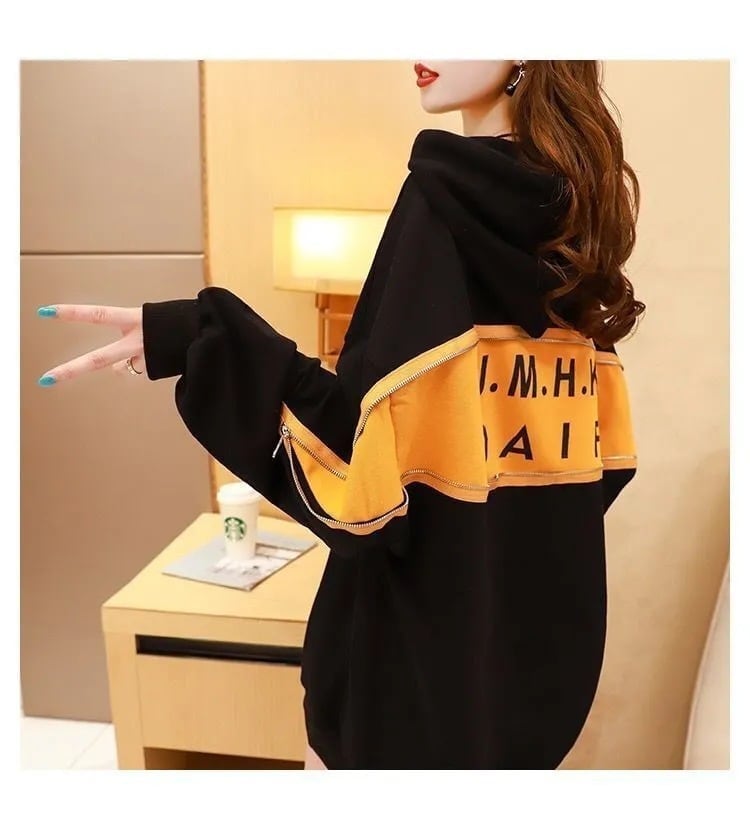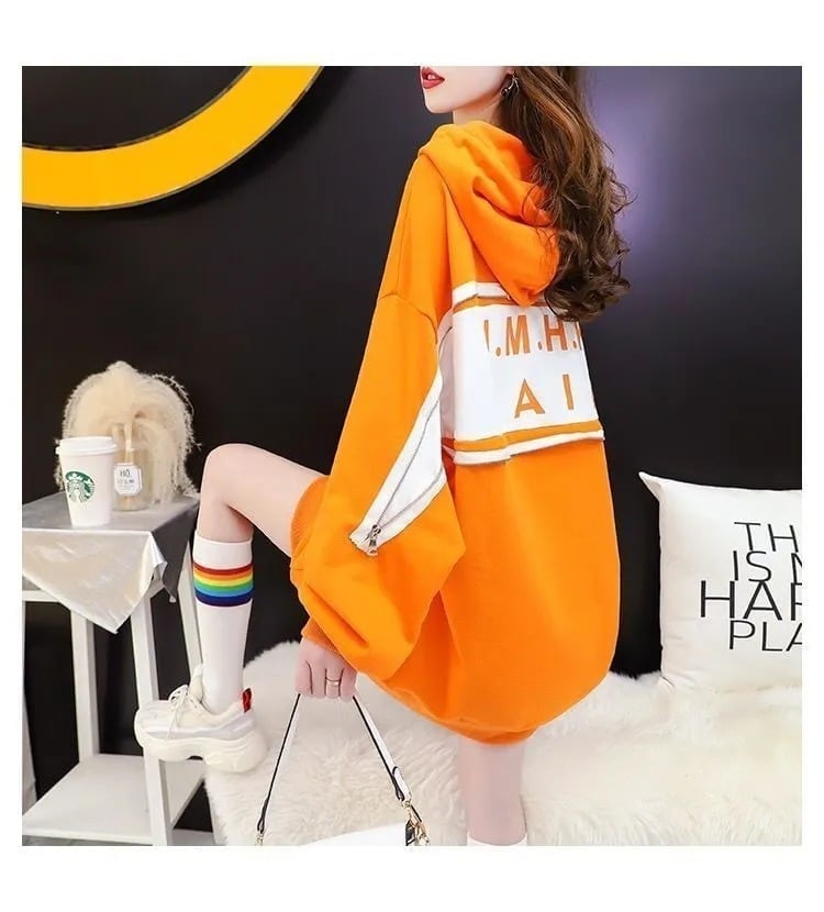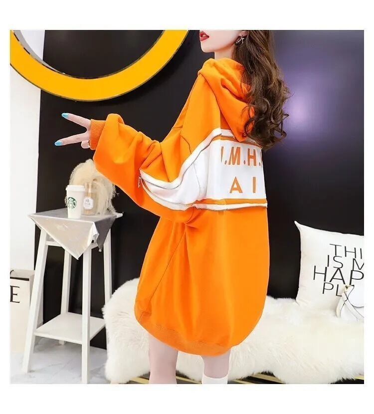 韓国系 着?せ ゆったりパーカー二色あり<F-4138>