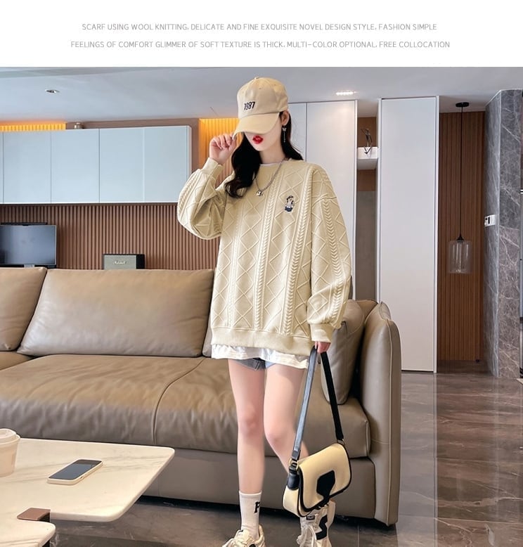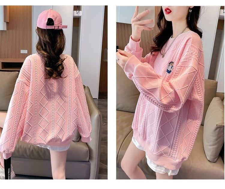 優しい雰囲気 ジャカード レイヤード ロゴ刺? 長袖トップス<F-4060>