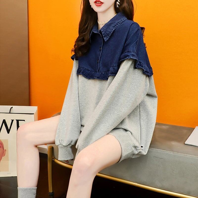 デザイン感 長袖 デイリー 切り替え スウェット パーカー トップス<F-2267>