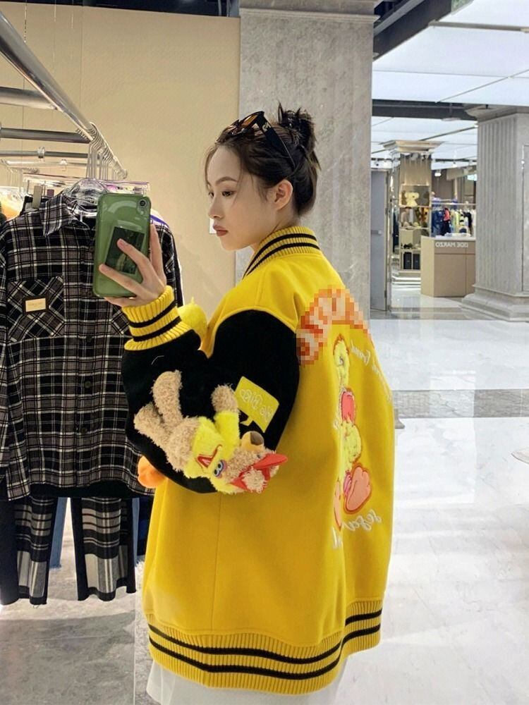 目を奪われる プラスベルベット切り替え カジュアル ぬいぐるみなし ジャケット <F-10589>