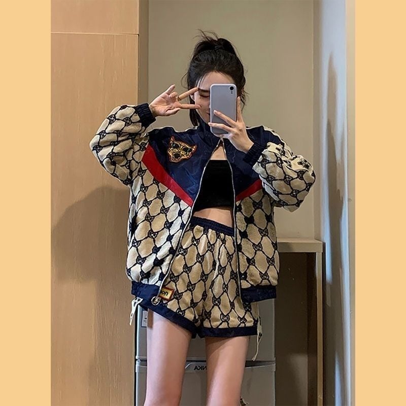 話題沸騰中 スタイルアップ 目を奪われる 切り替え ジャケット+ショートパンツ セットアップ<F-9192>