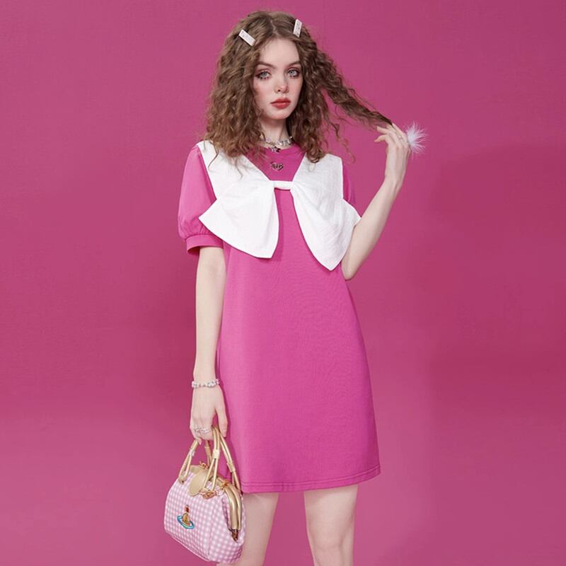 大活躍 ファッション 上質 切り替え レイヤード風 ワンピース<F-8895>