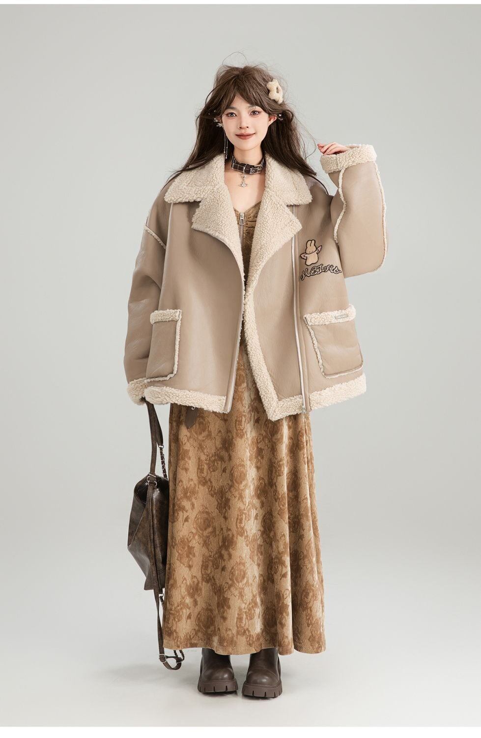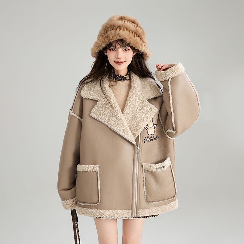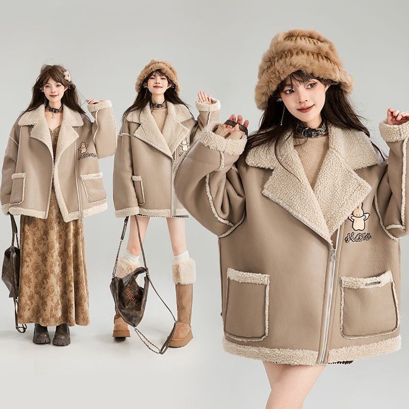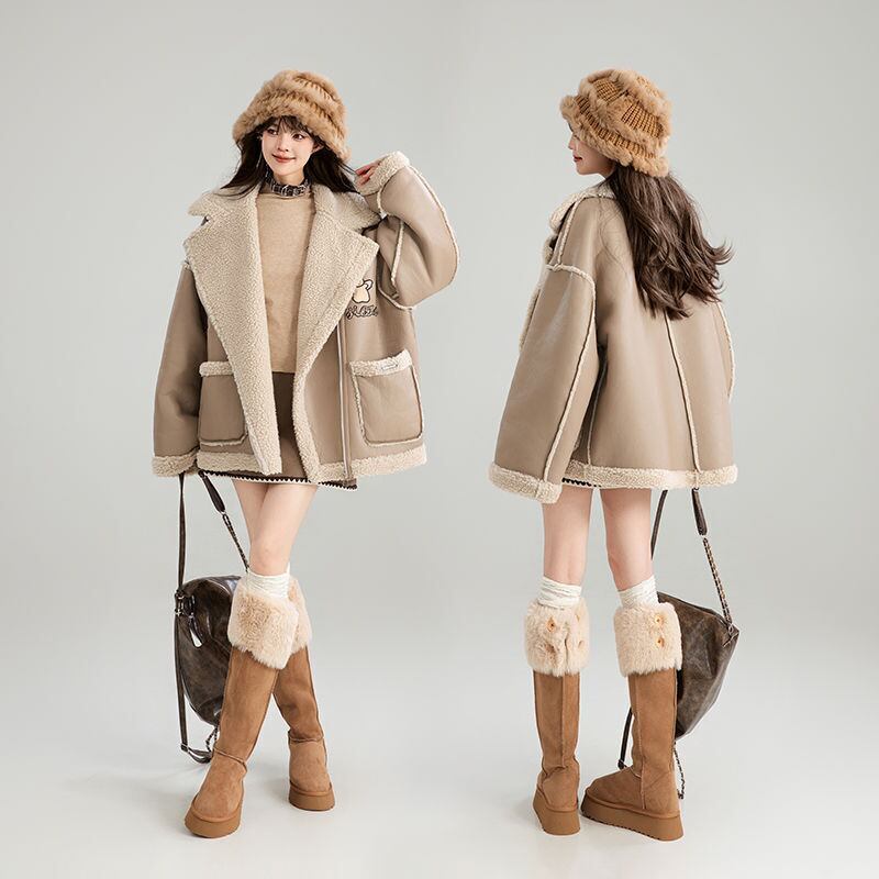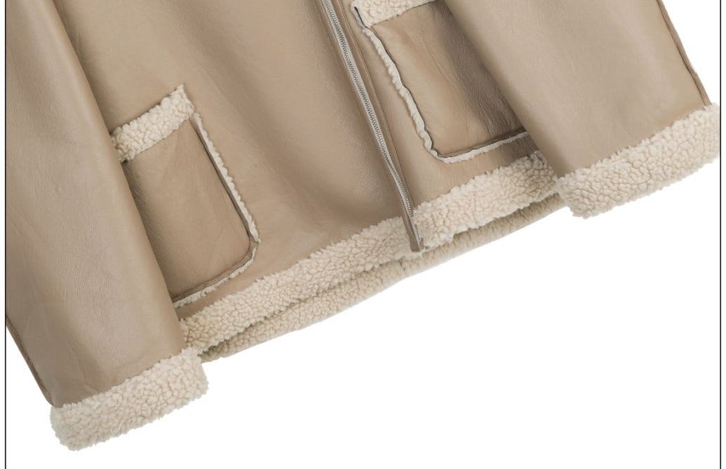 高級感溢れる 革ファッション厚い暖かいフェイクシャーリングジャケットコート ファッション感満々 <F-9884>