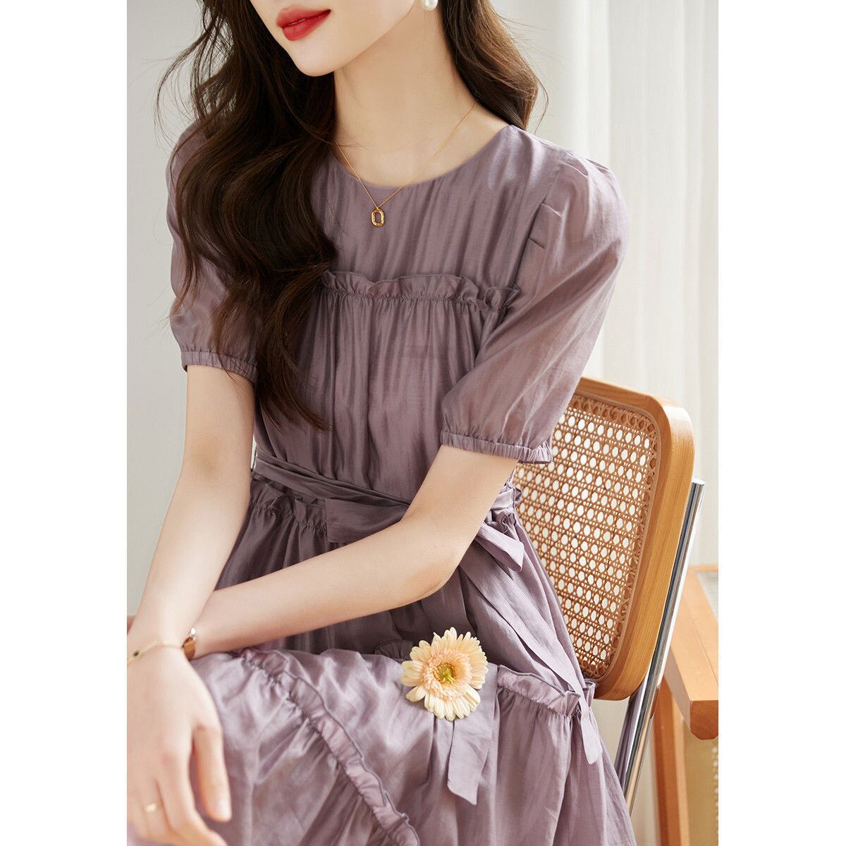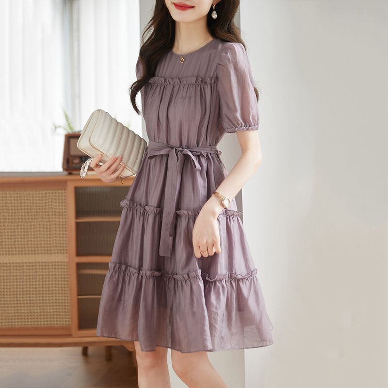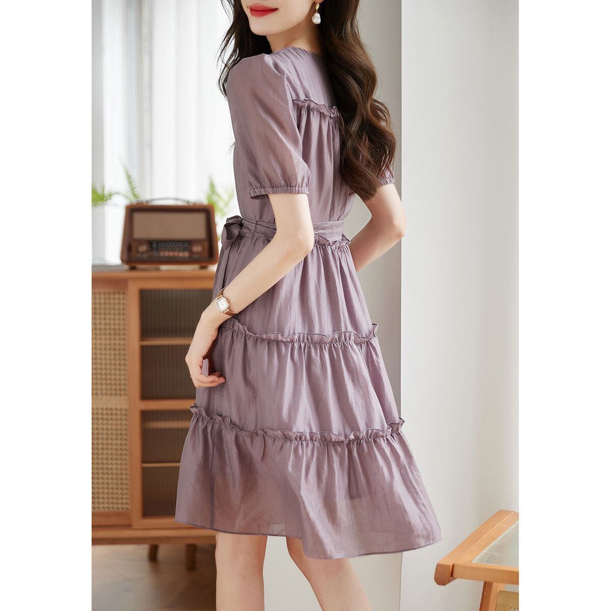 今季マストバイ フリル エレガント 半袖ワンピース<F-8357>