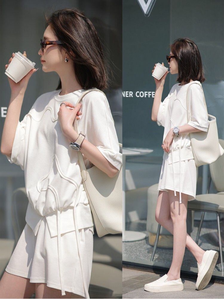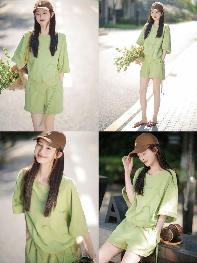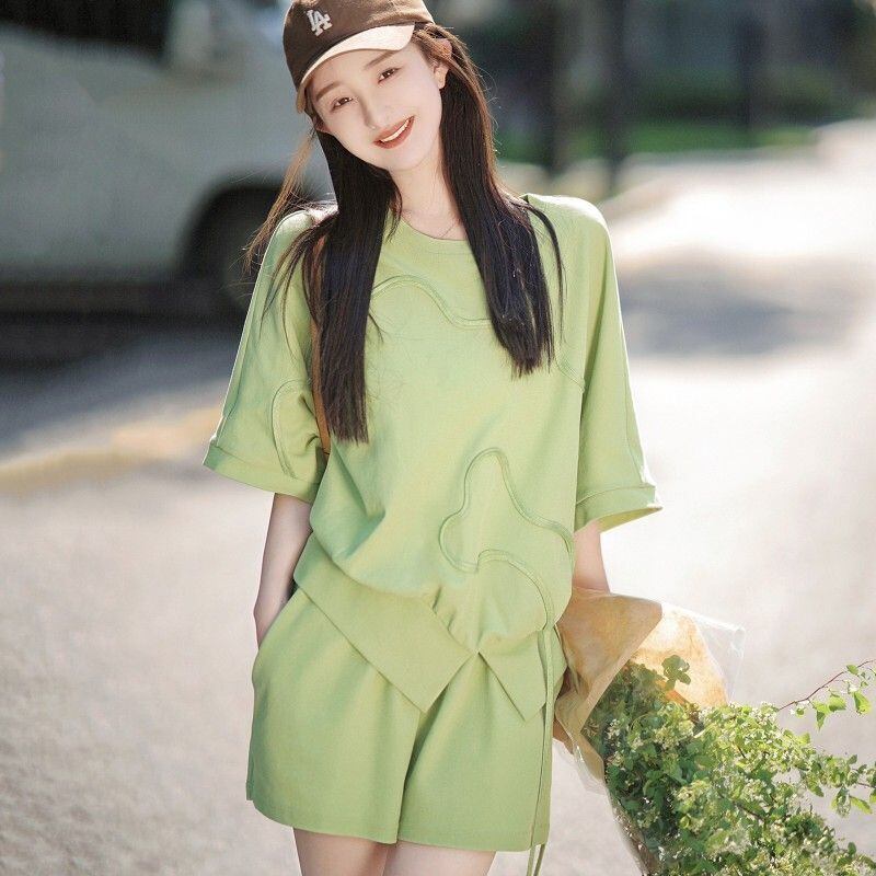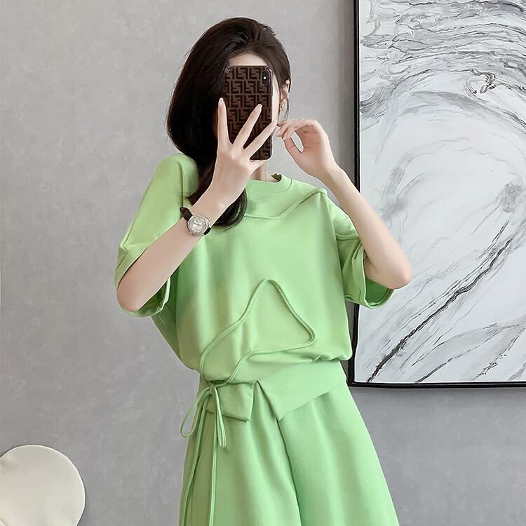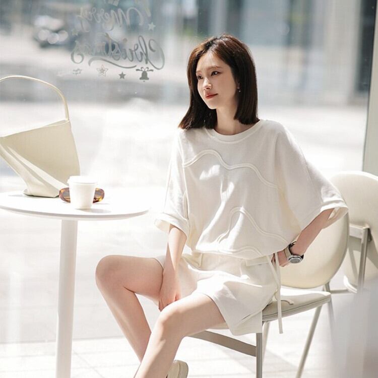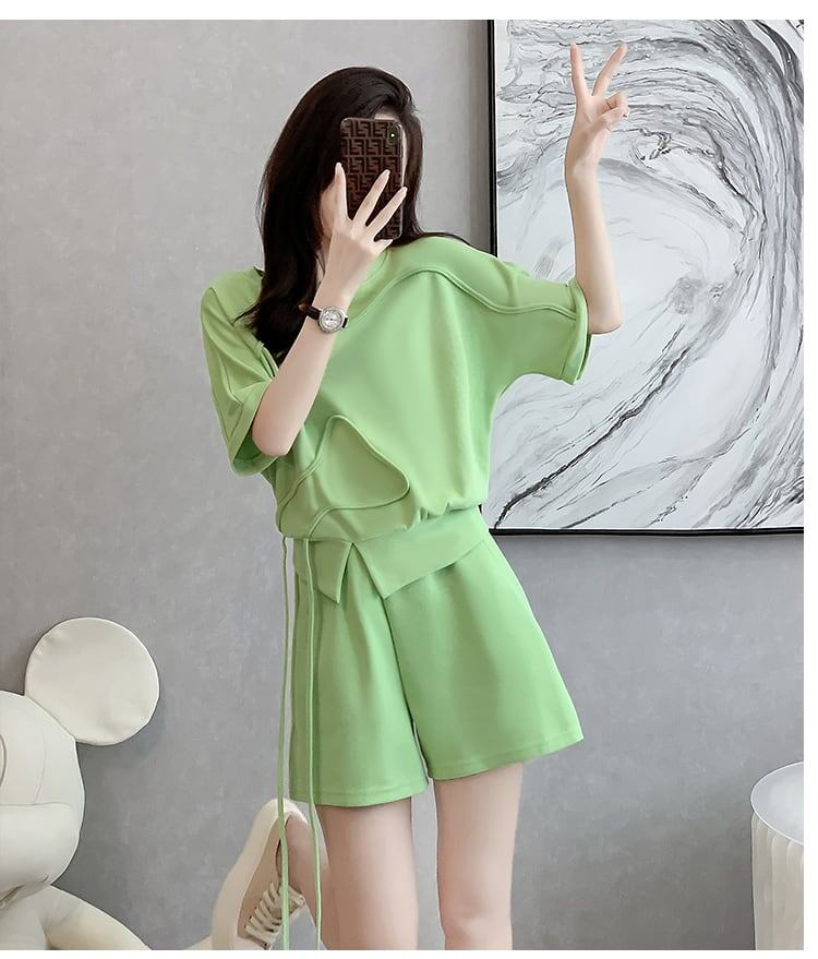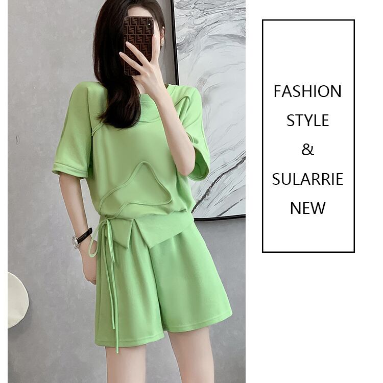 着心地良い ラウンドネック カジュアル 半袖Tシャツ ショートパンツ セットアップ <F-8653>