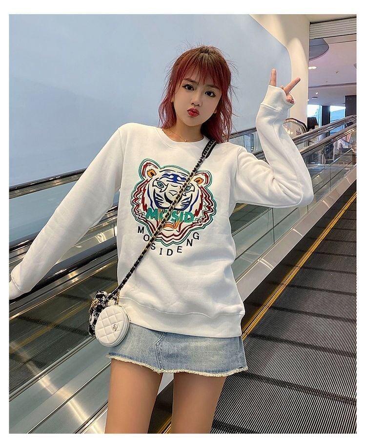 超人気商品トラ柄刺ロゴスウェットトップス全3色<F-4235>