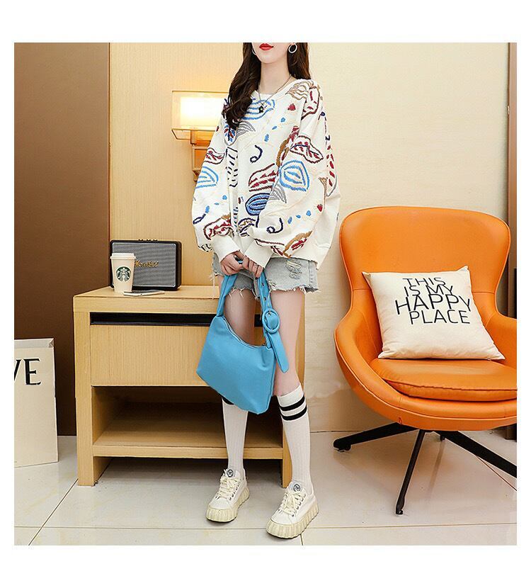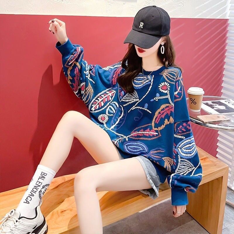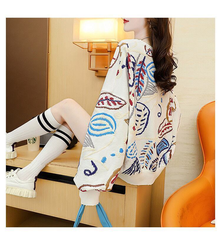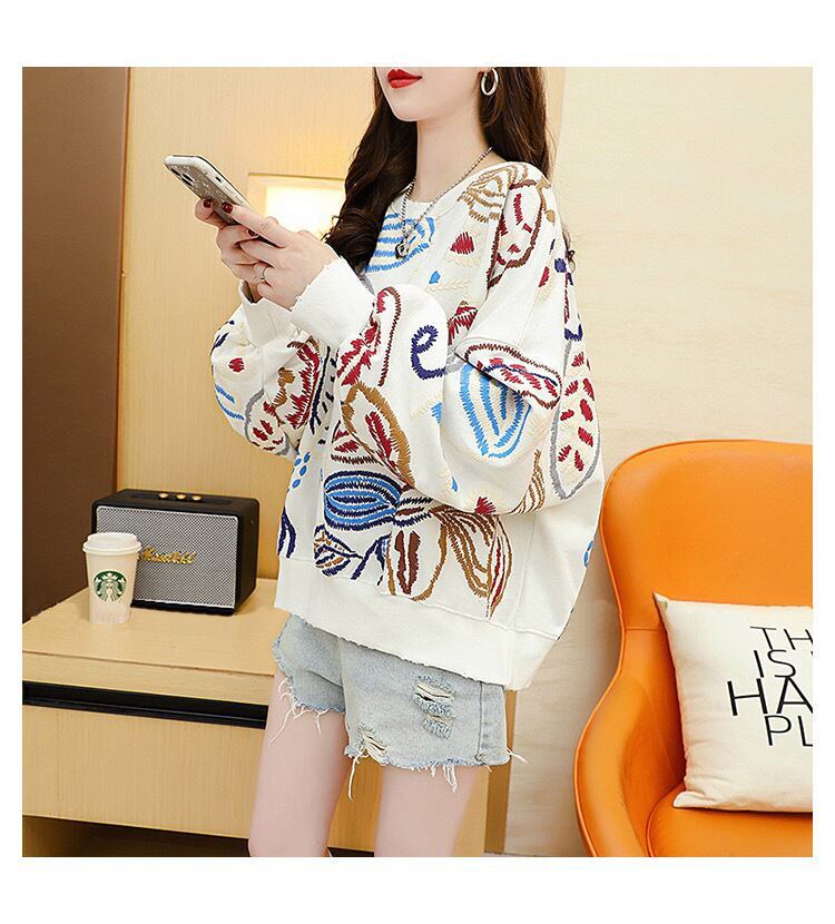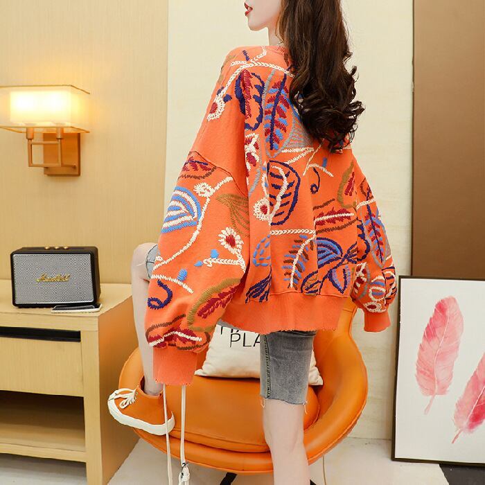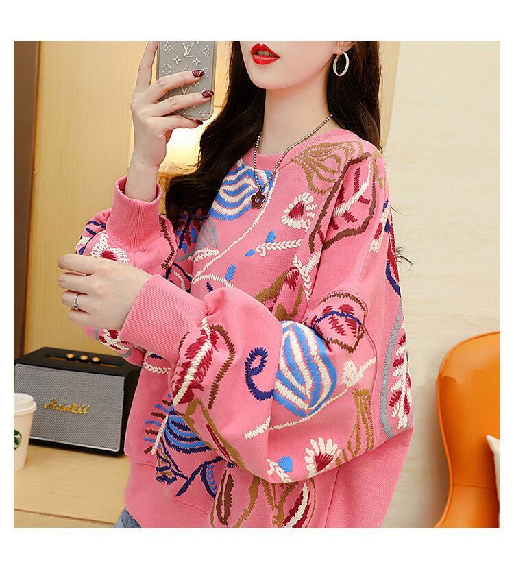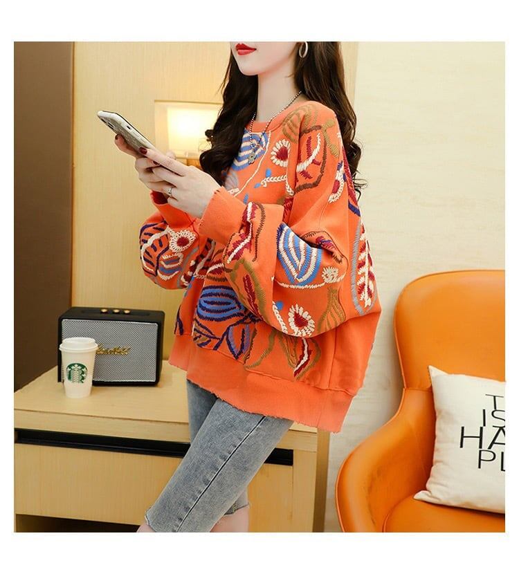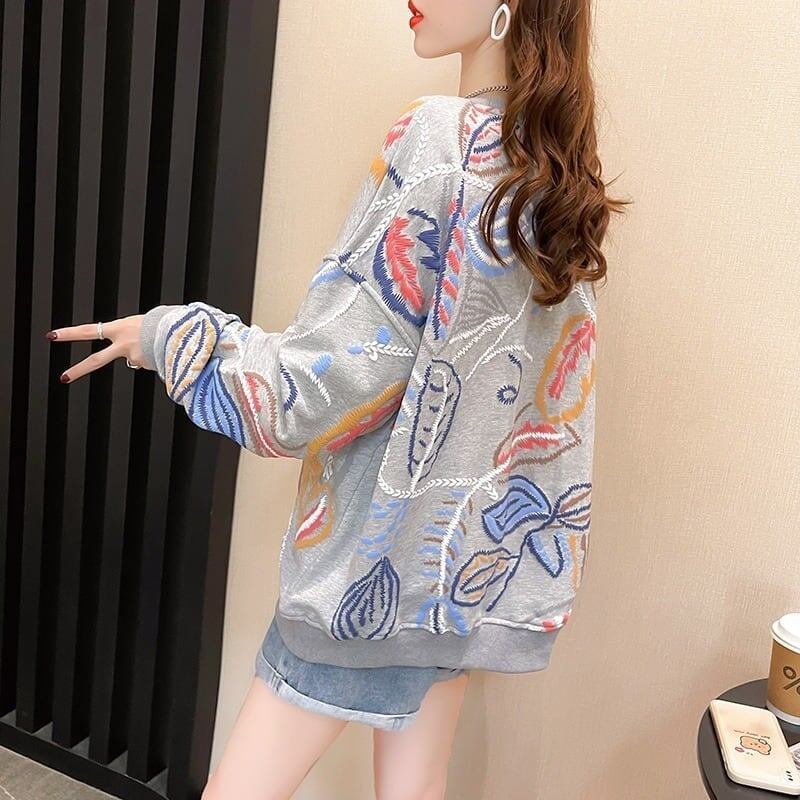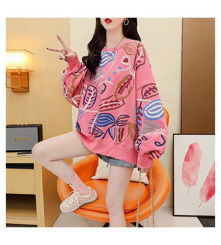 質感のいい刺スウェット五色ありトップス<F-4153>