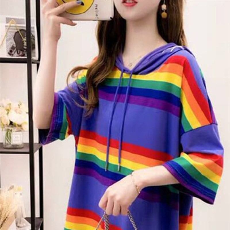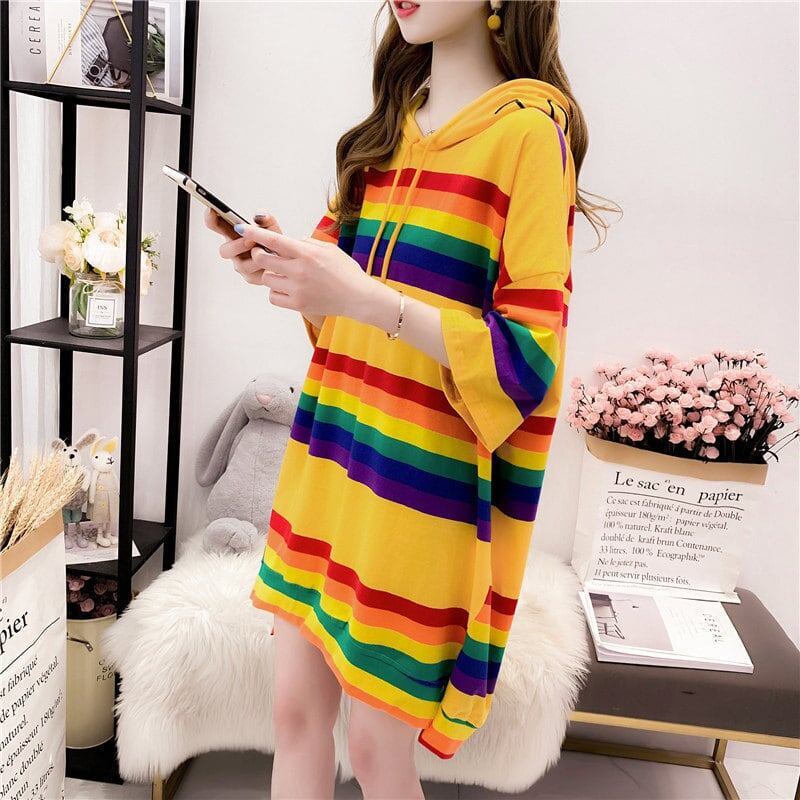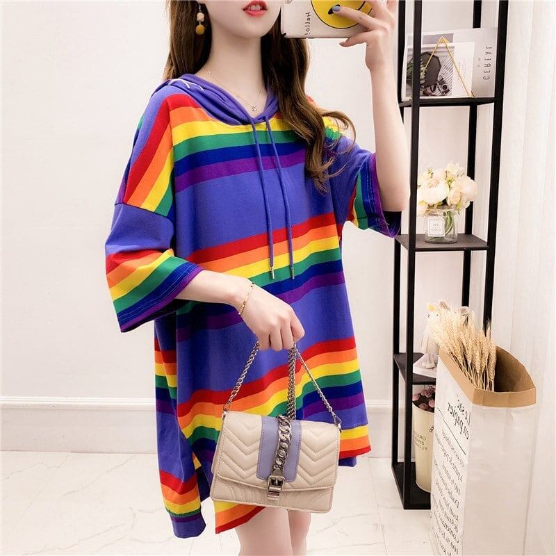 小さな新鮮なストライプのフード付き T