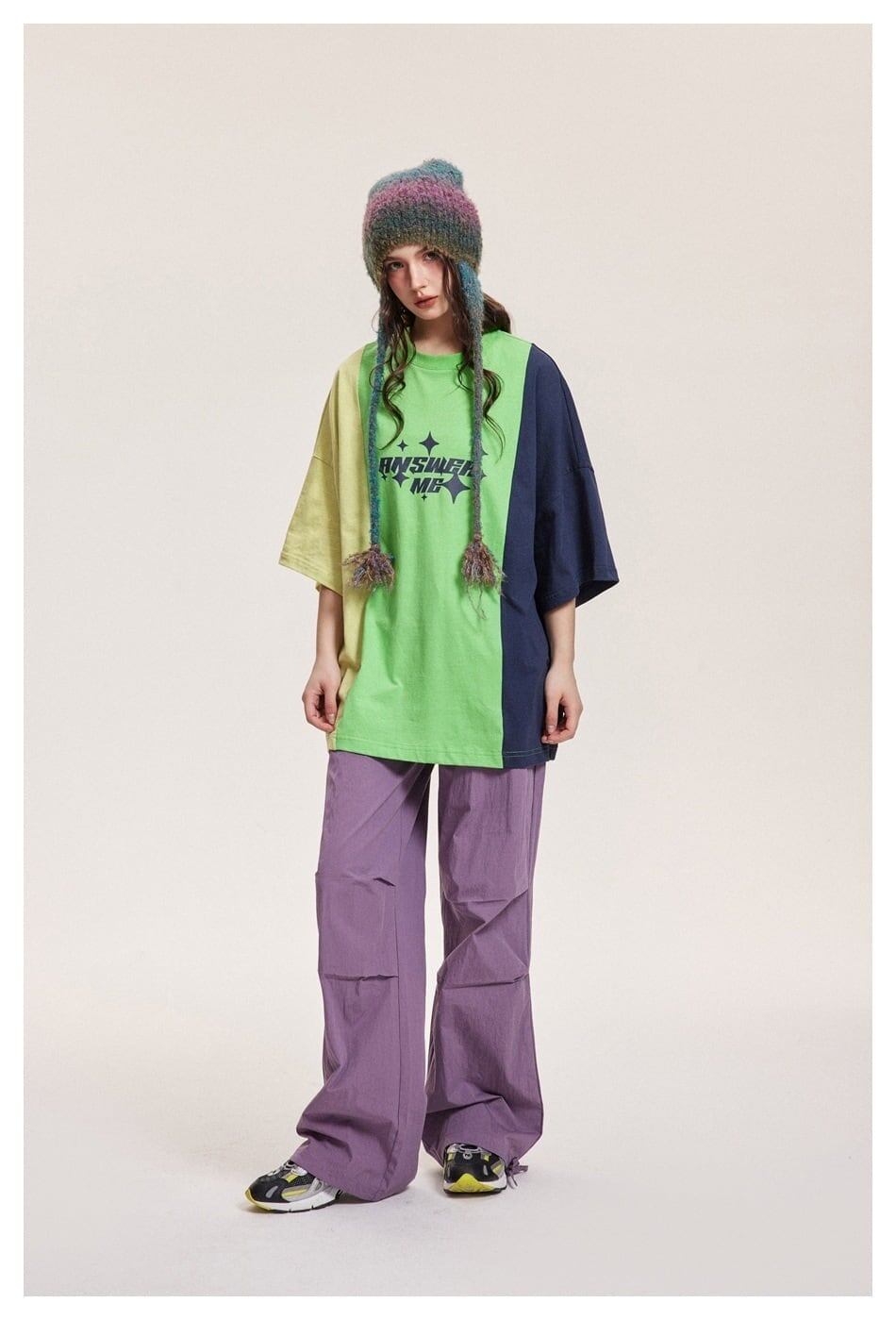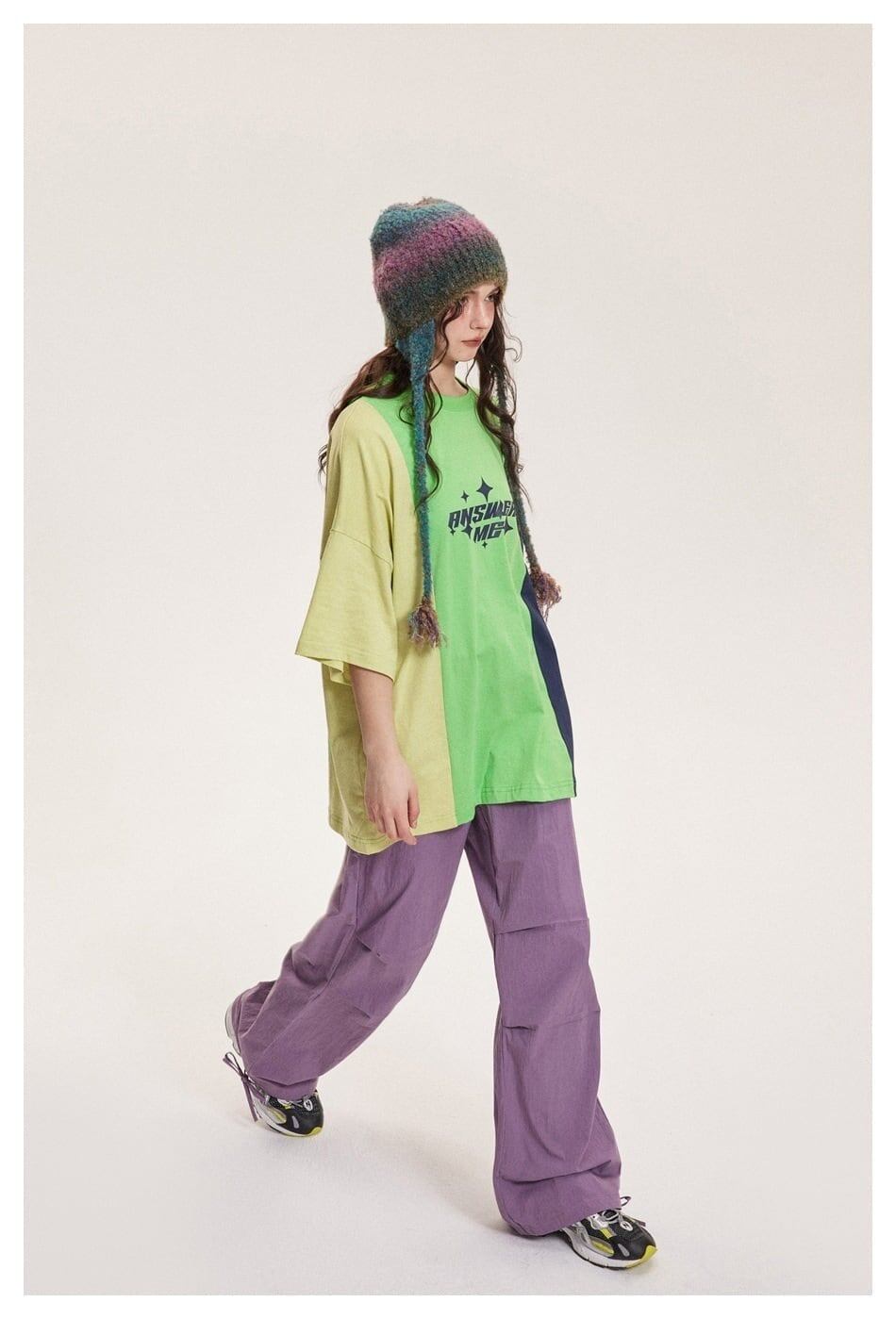 タイドブランドデザインセンス配色レトロプリントコットンTシャツ<F-2899>
