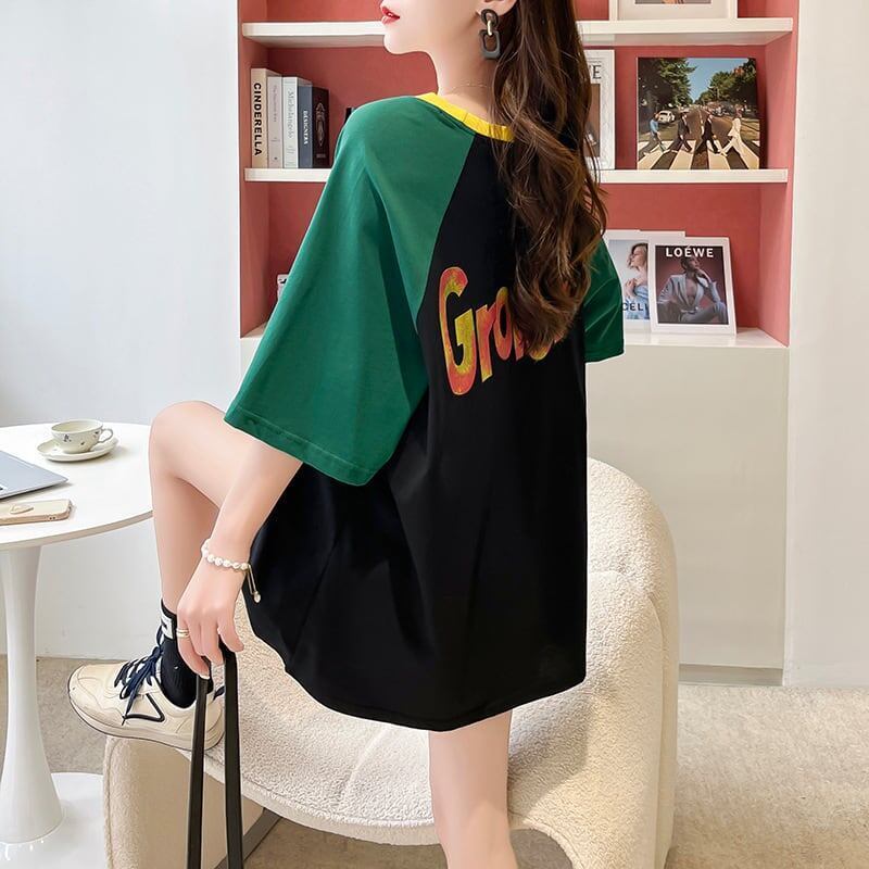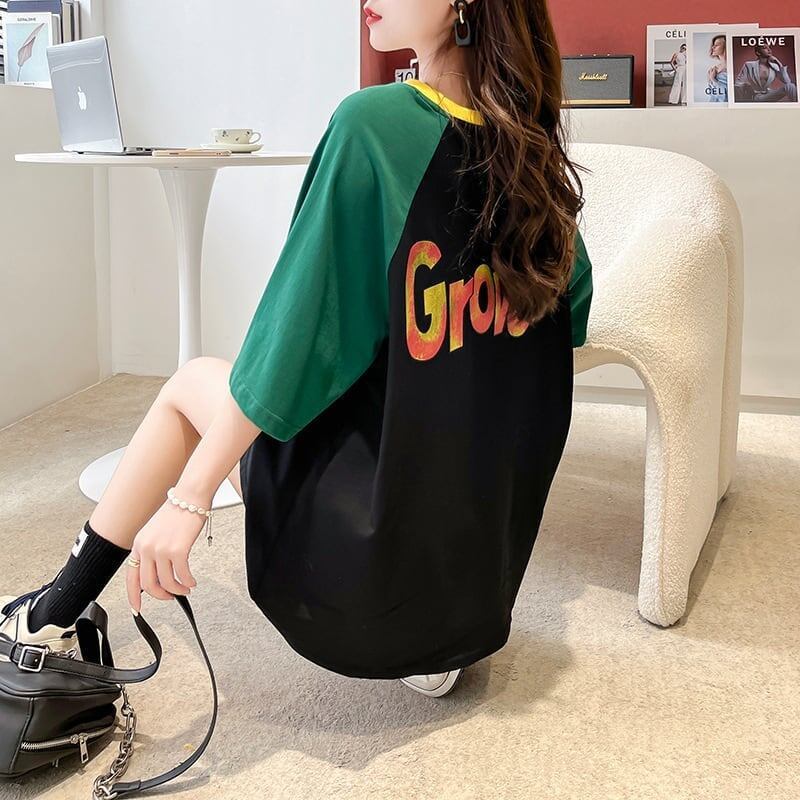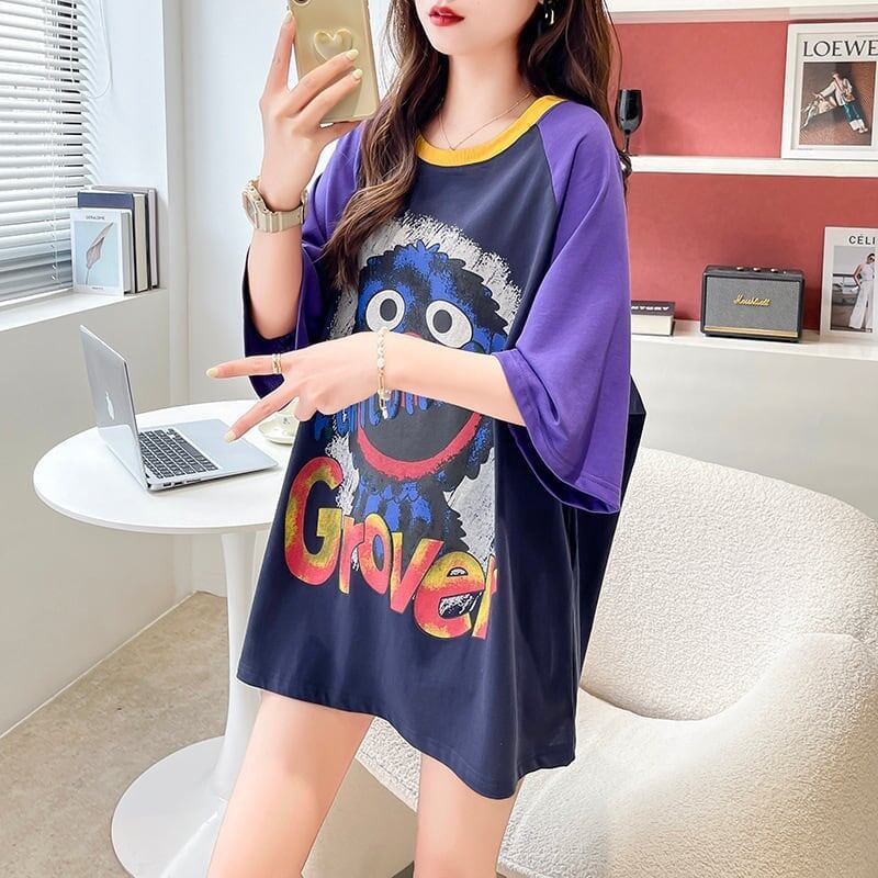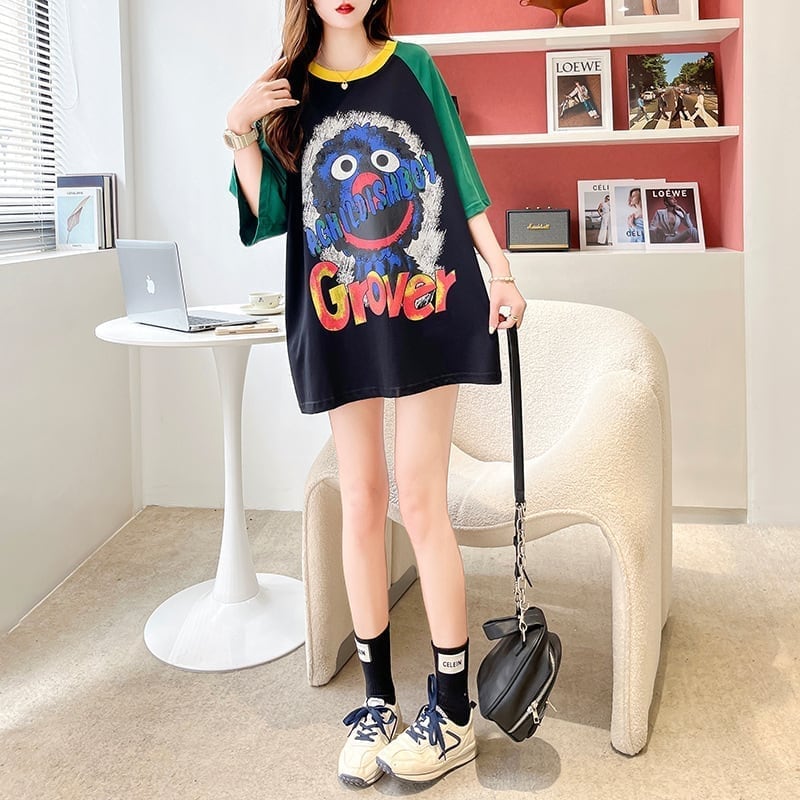 デザインカジュアルオールマッチステッチ漫画ラウンドネック半袖<F-2876>