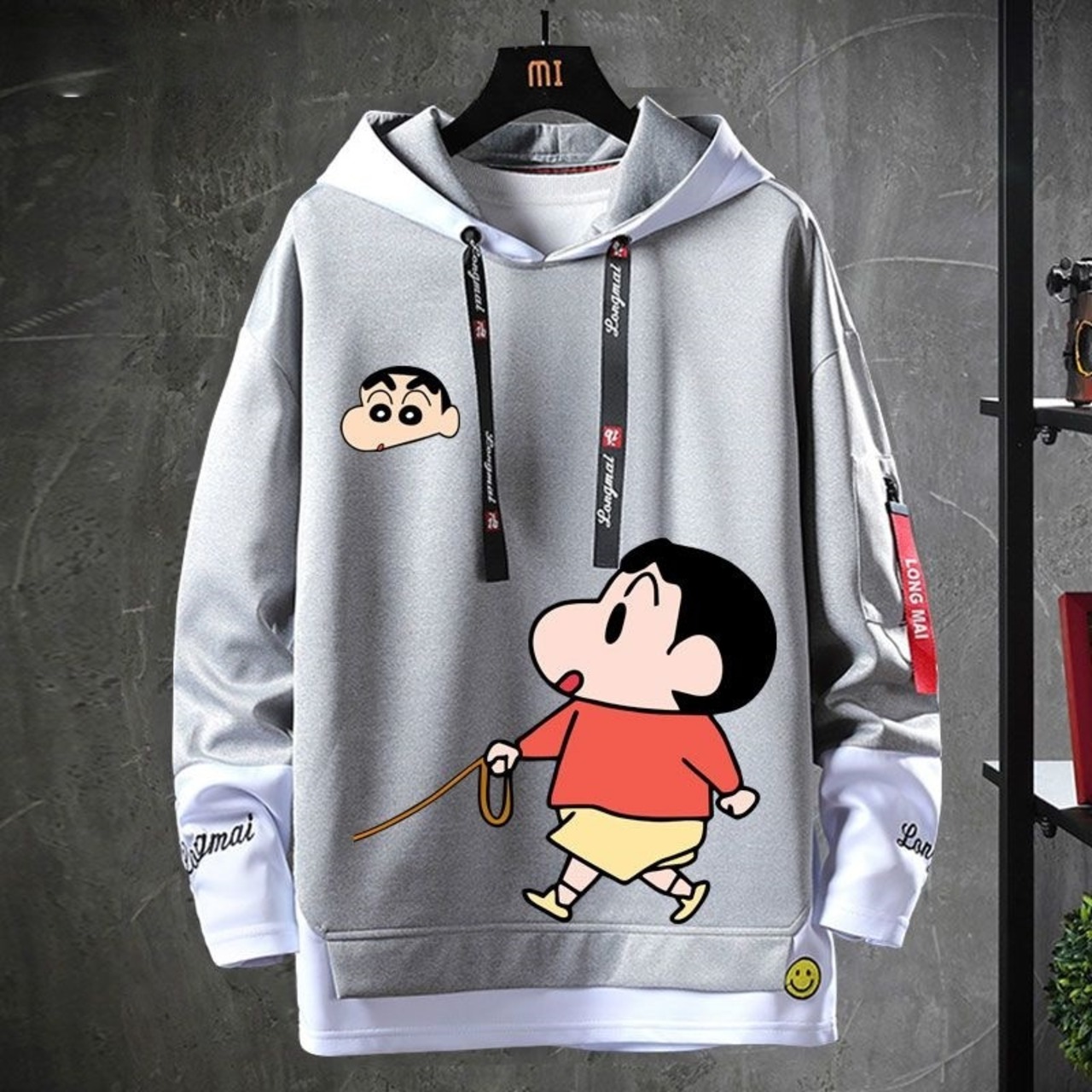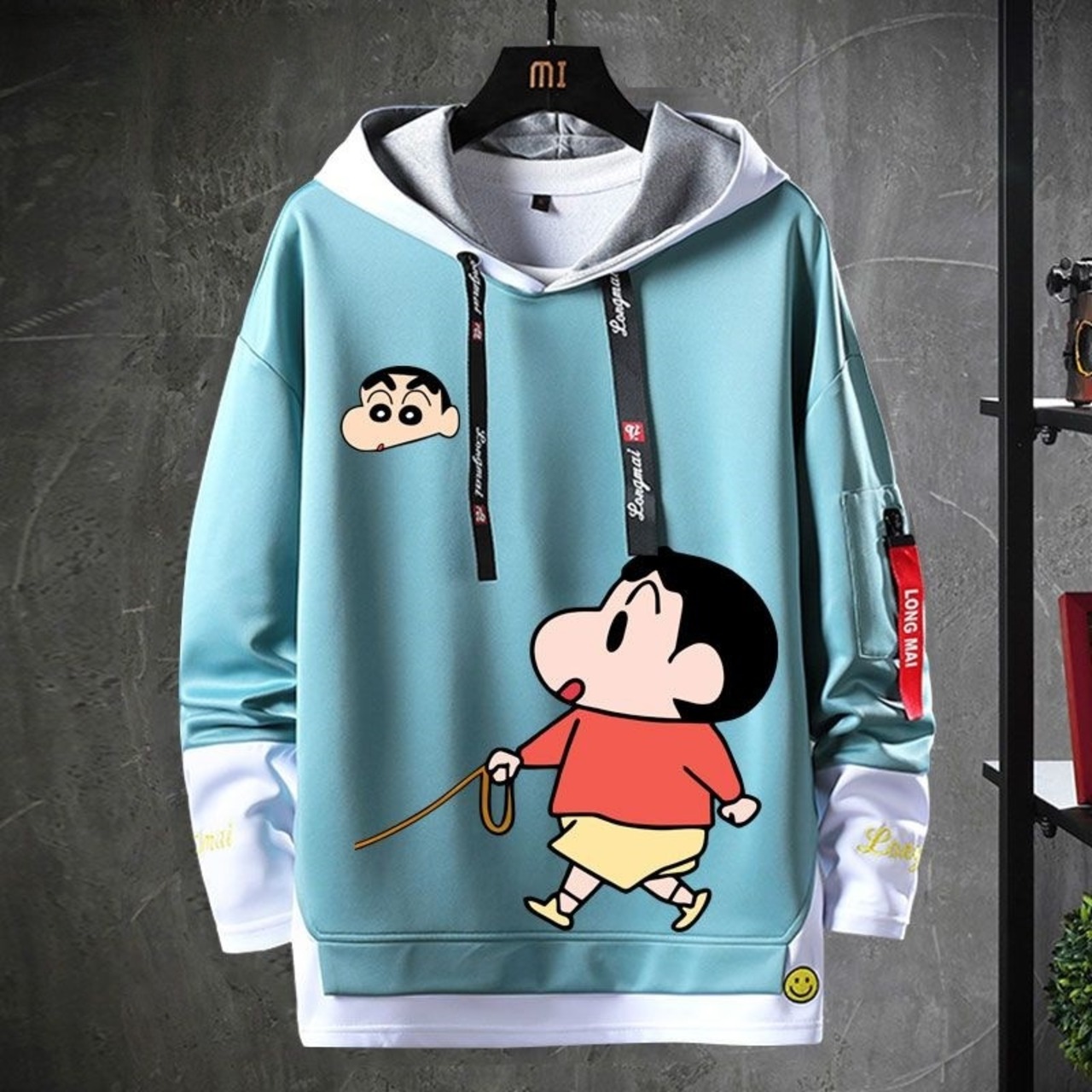 おすすめ レイヤード風 プリントロゴ 4色展開 ユニセックス フード付きパーカー<F-6950>