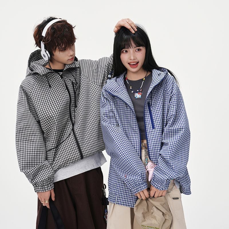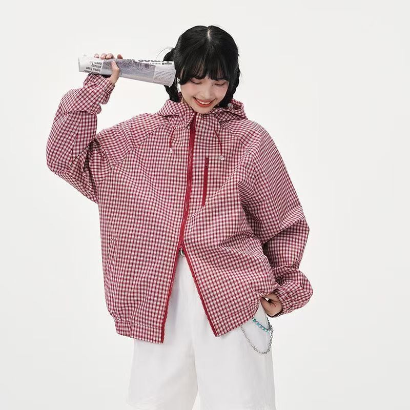 大好評 全3色 男女兼用 フード付きチェックジャケット <F-12920>