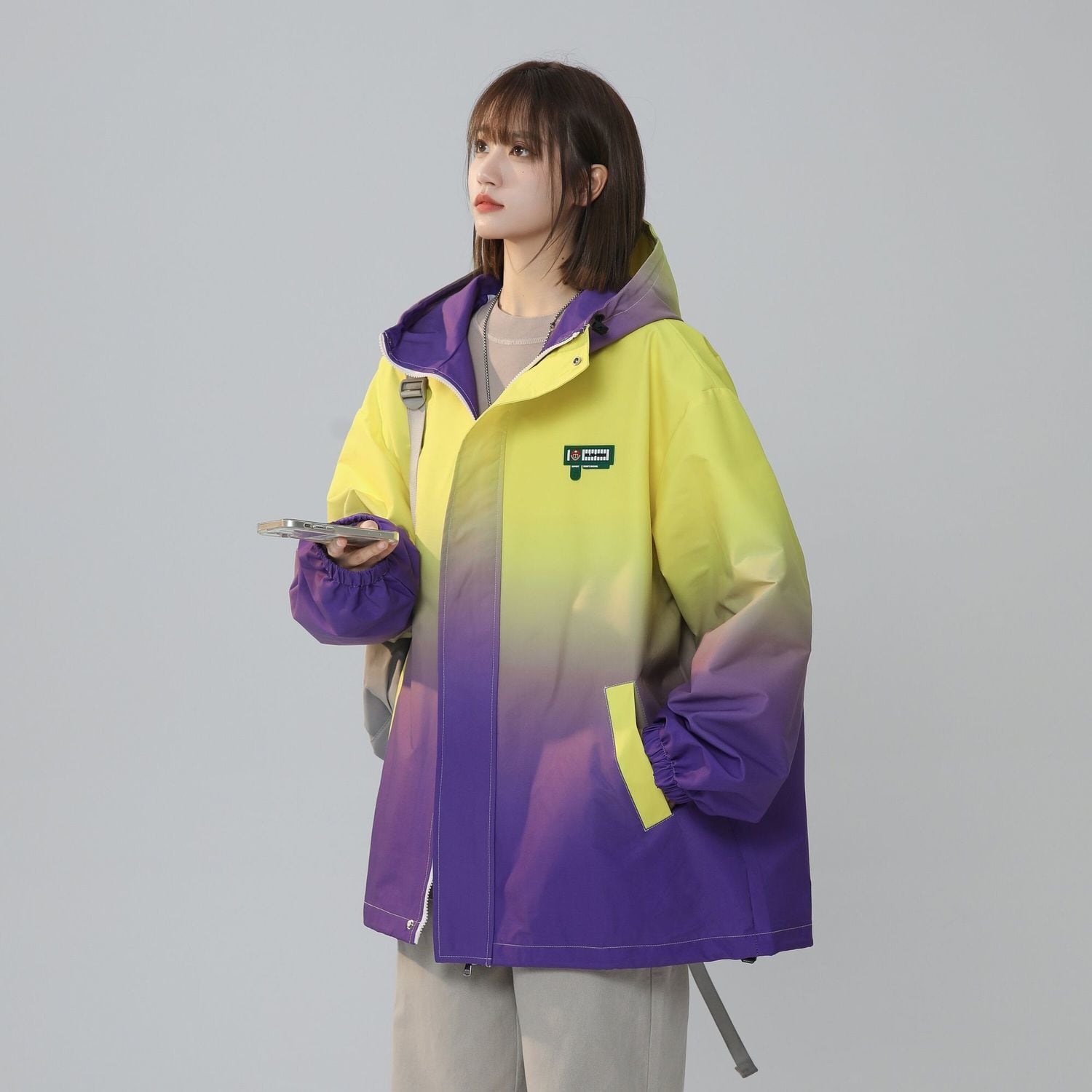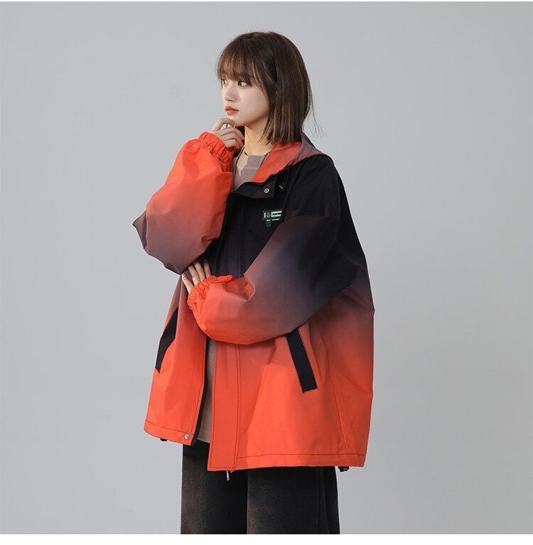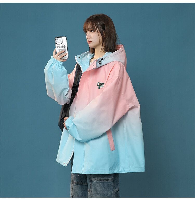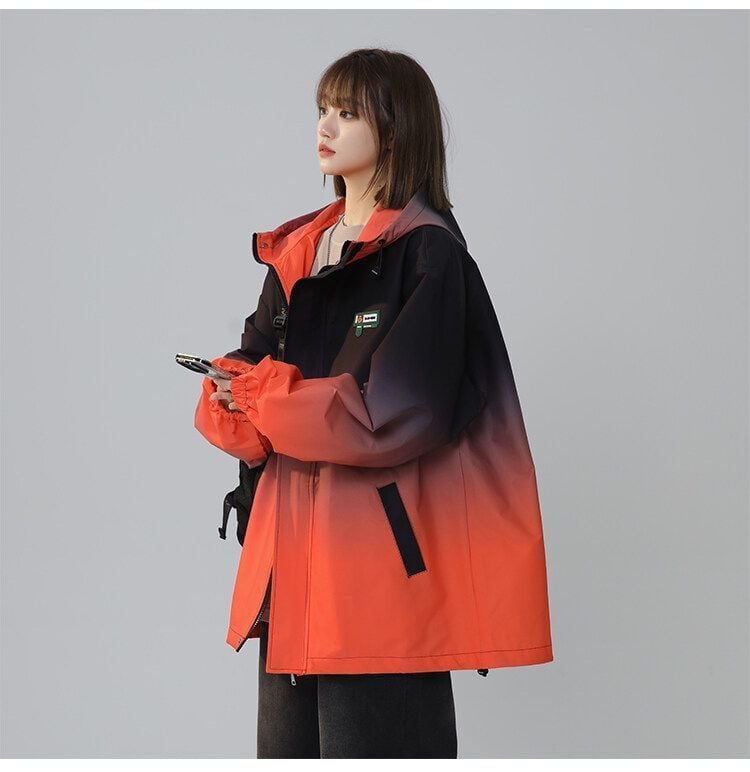 超特価 大注目 4色展開 男女兼用 グラデーション柄 フード付きウインドブレーカー<F-13002>