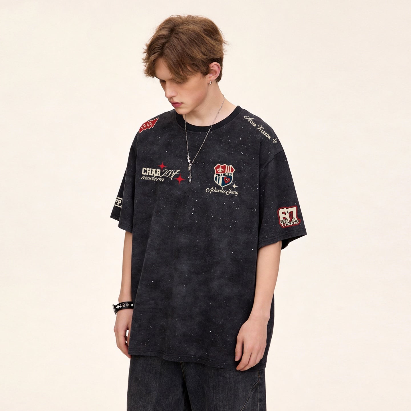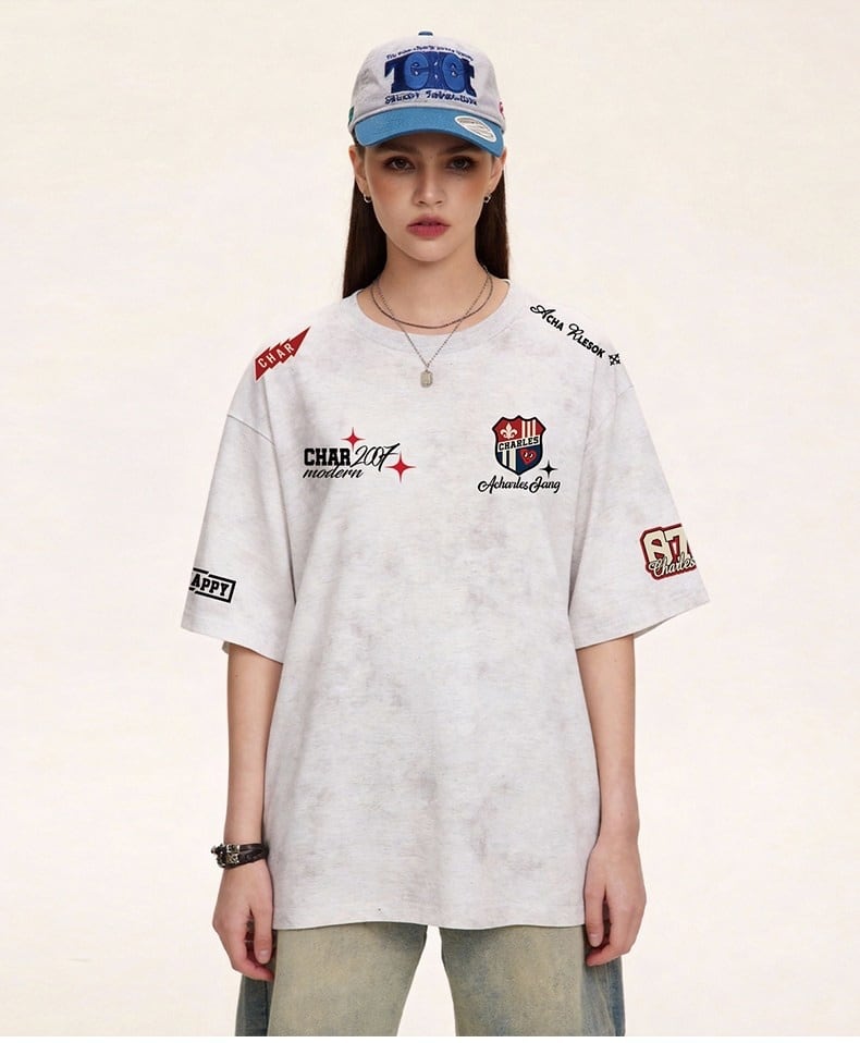 定番シンプル 今季マストバイ 全4色 ロゴプリント ダメージ加工Tシャツ 男女兼用<F-13044>