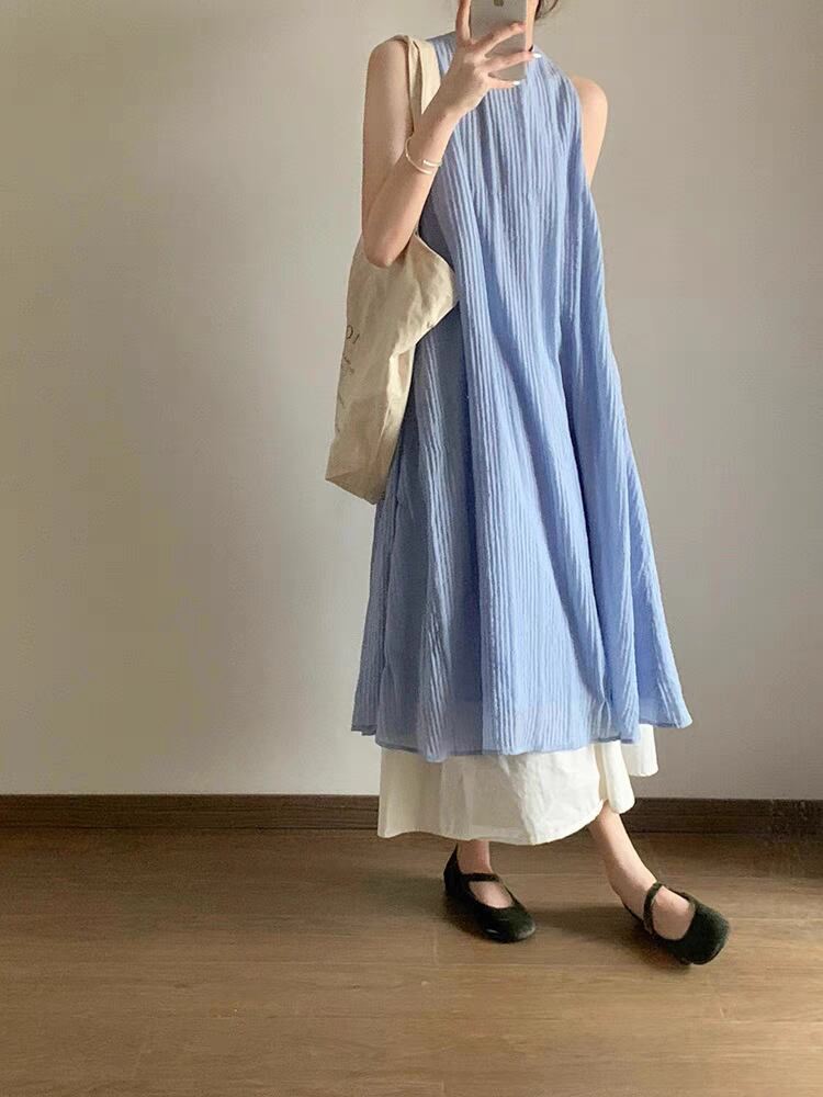 夏用 マキシ丈 Aライン カジュアル ワンピース <F-13172>