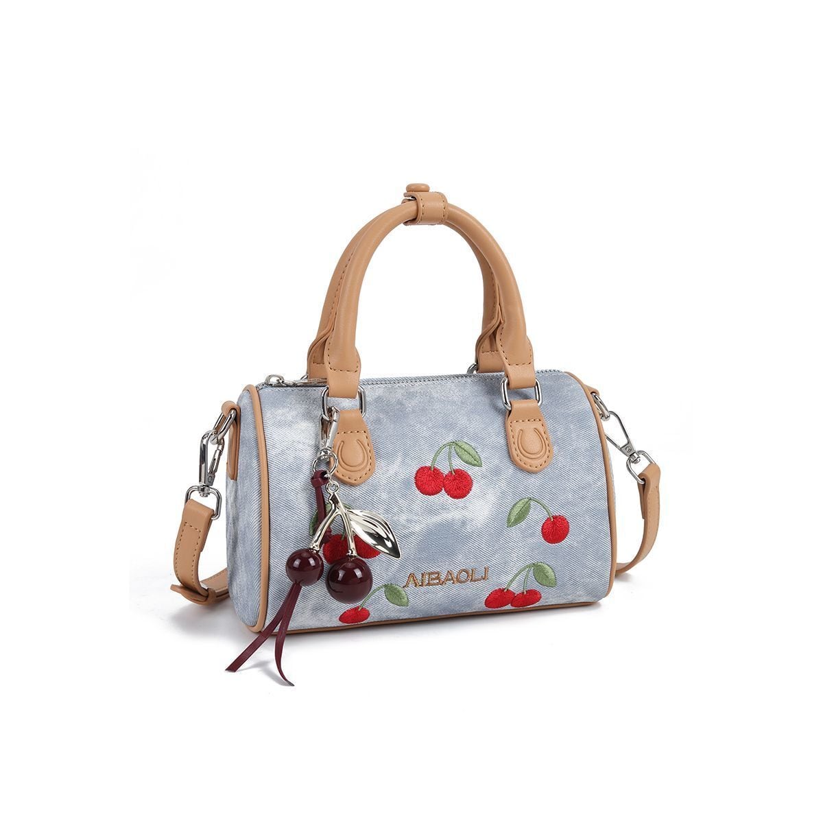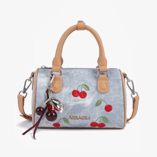 超人気商品 チェリー刺繍 デニム調 バッグ <F-13186>