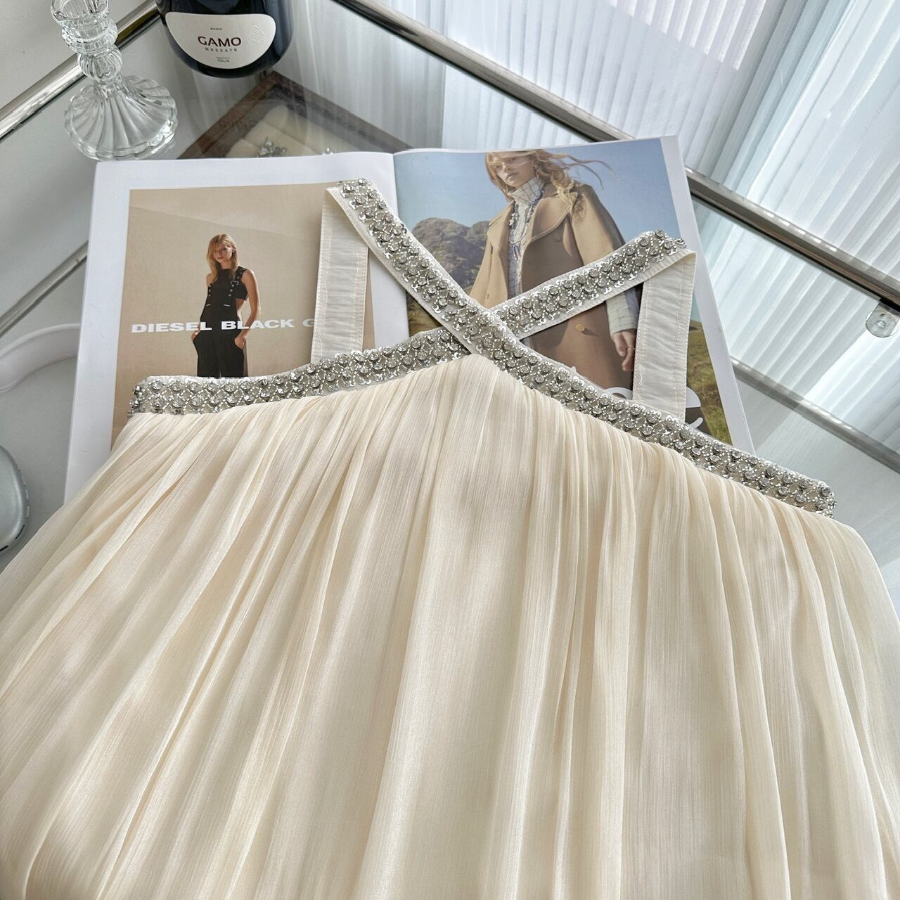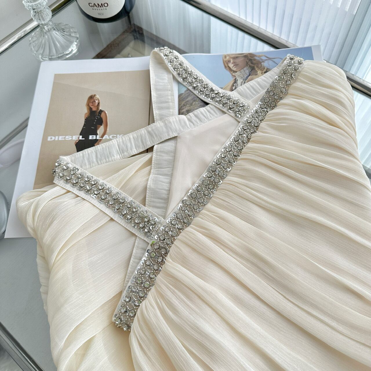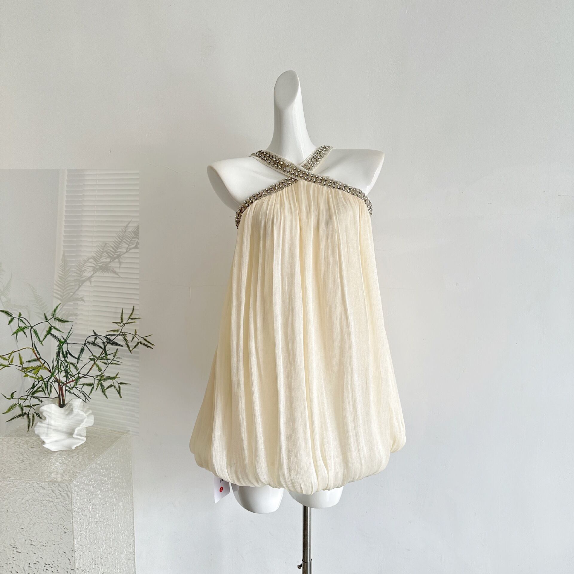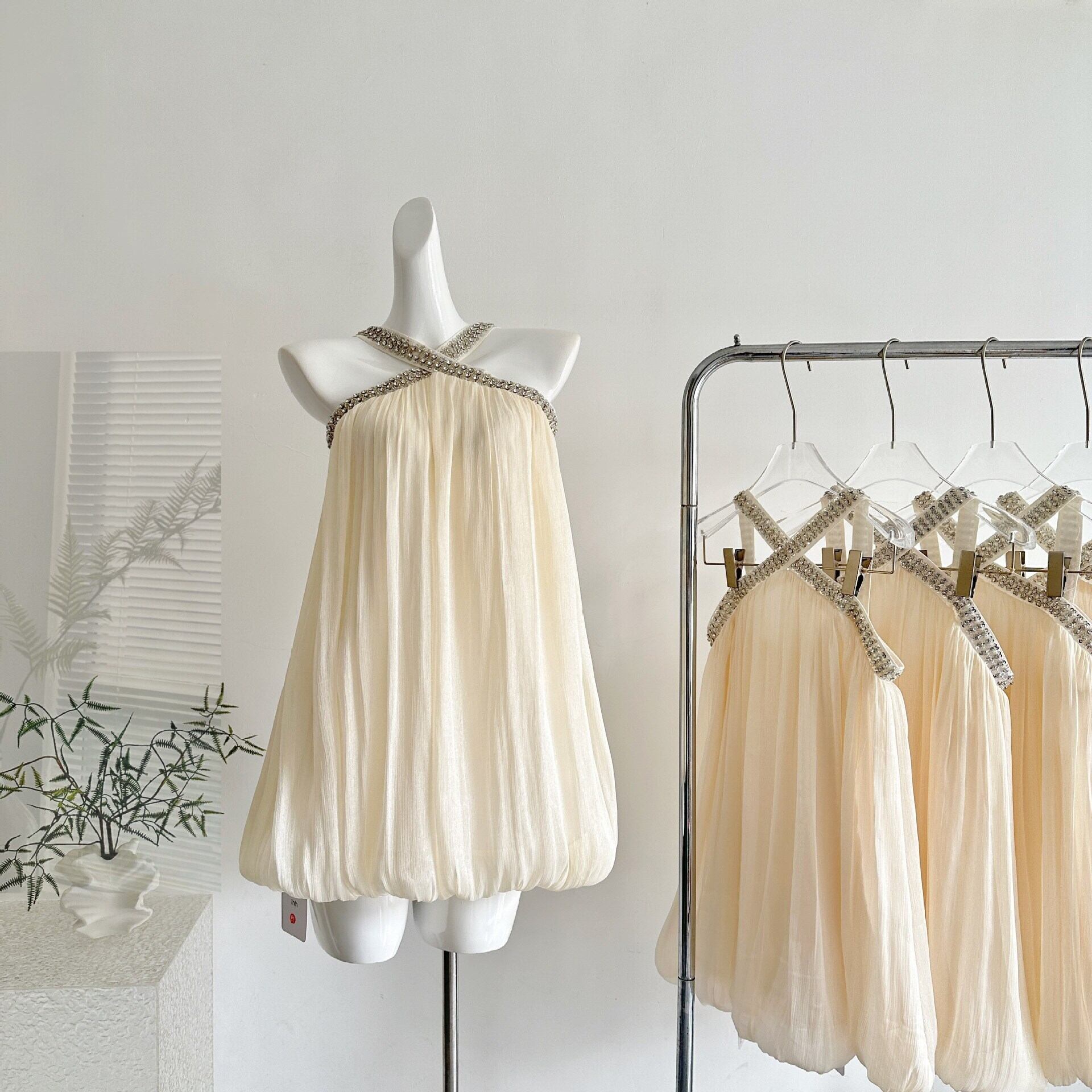 ハルターネック ラインストーン ワンピース <F-13224>