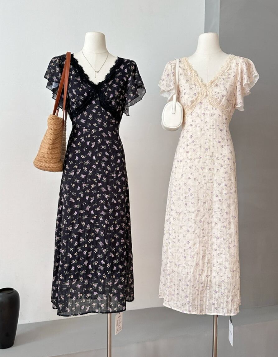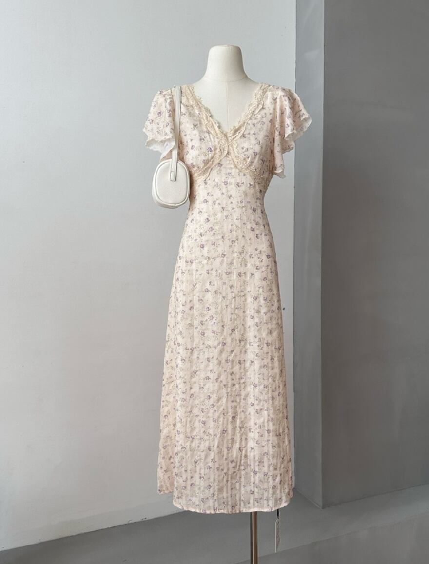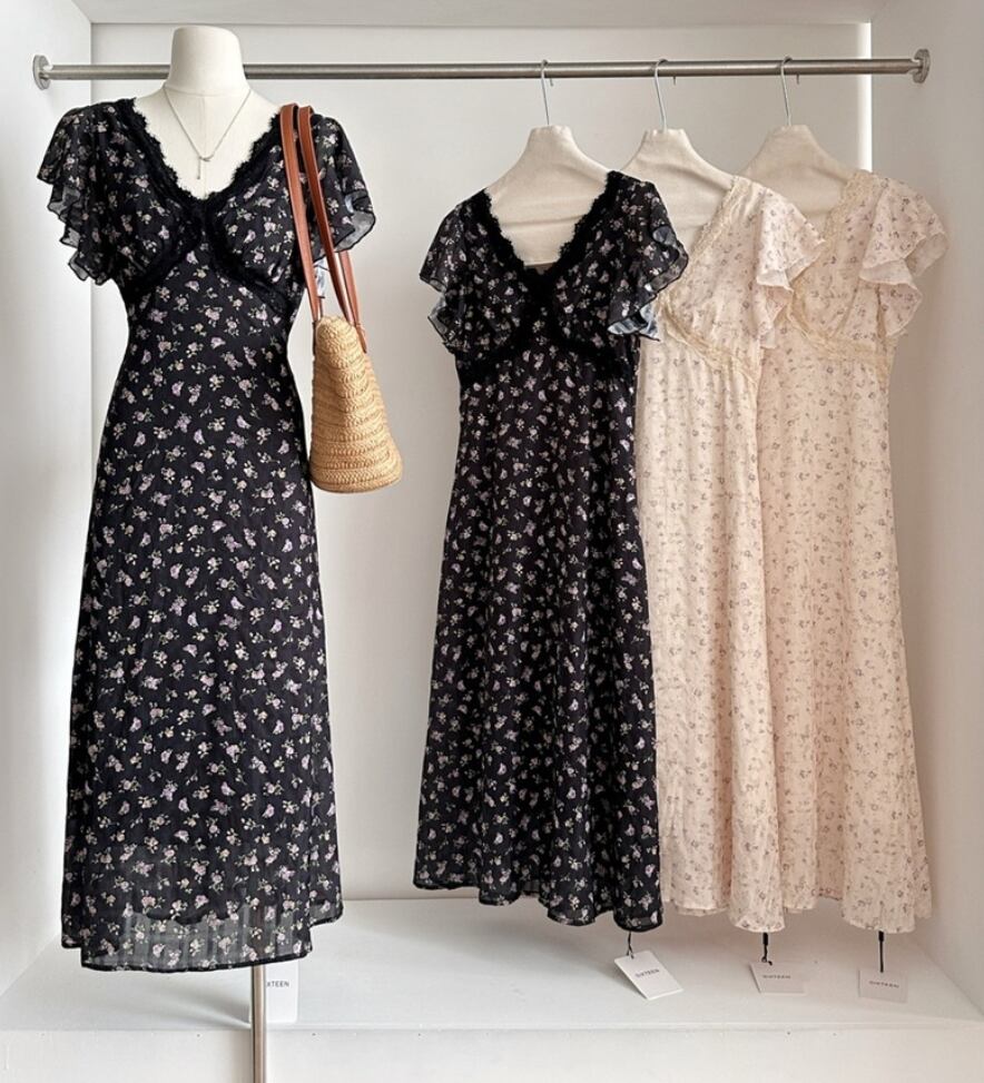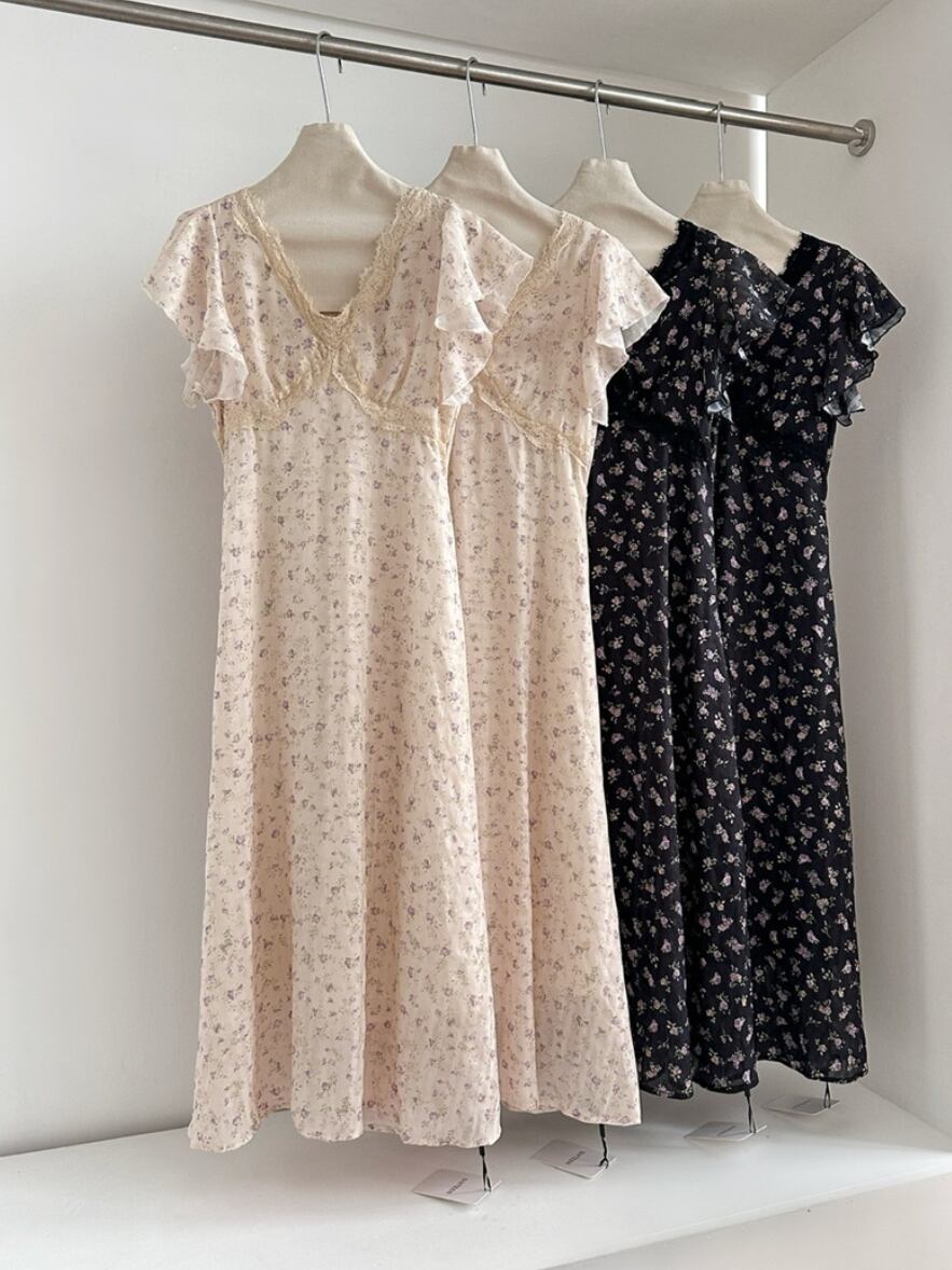 ナチュラル 小花柄 フリル ワンピース <F-13228>