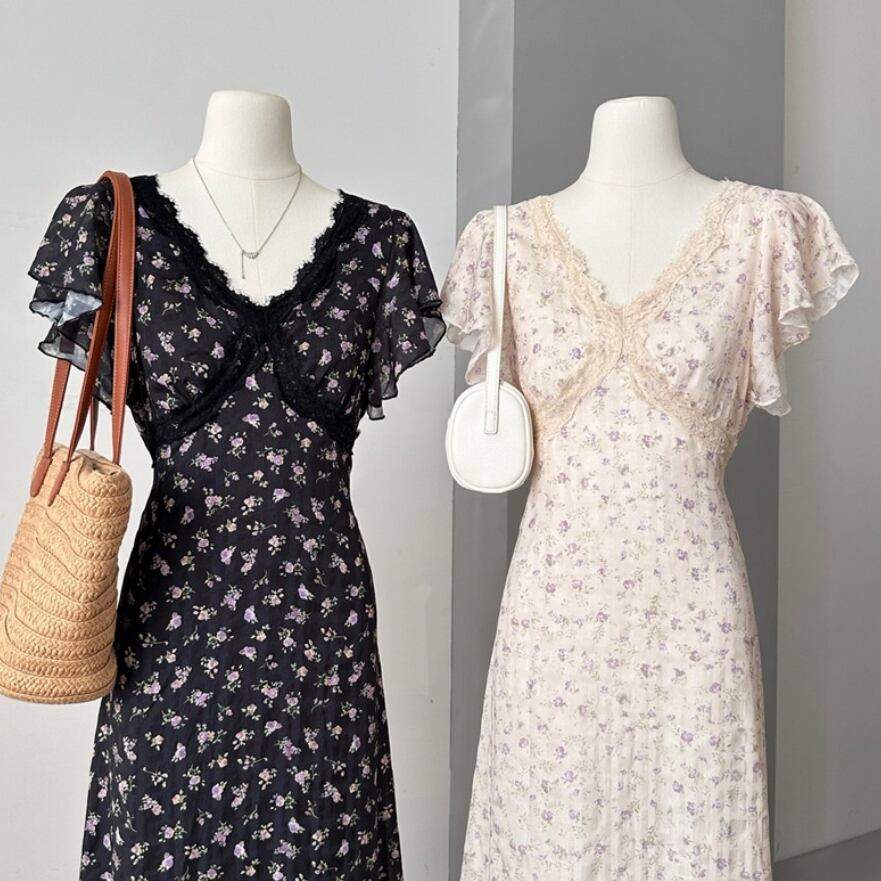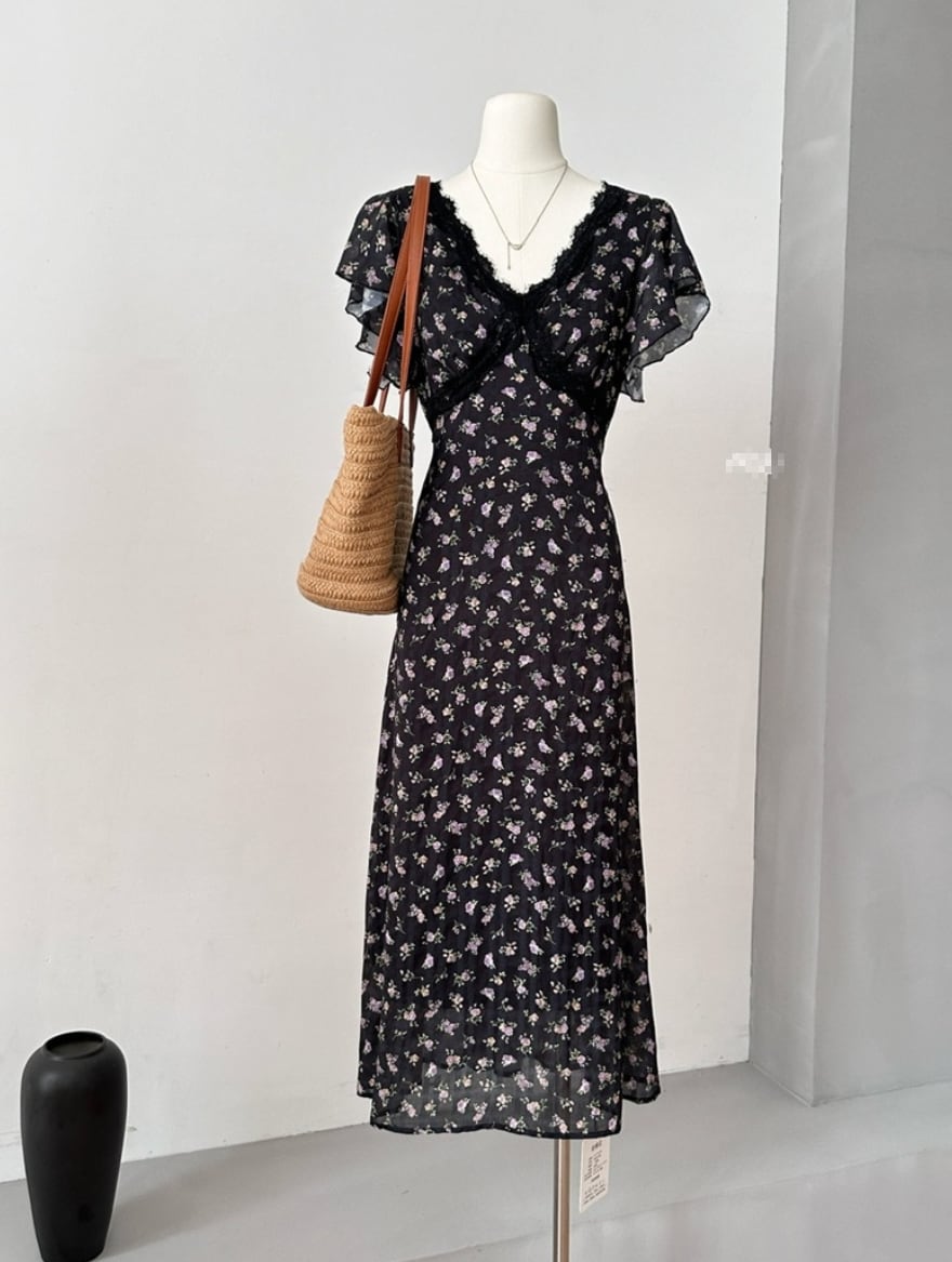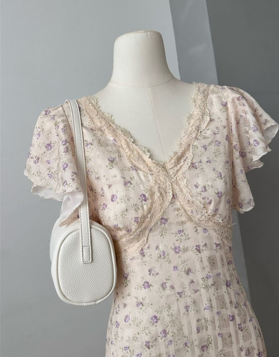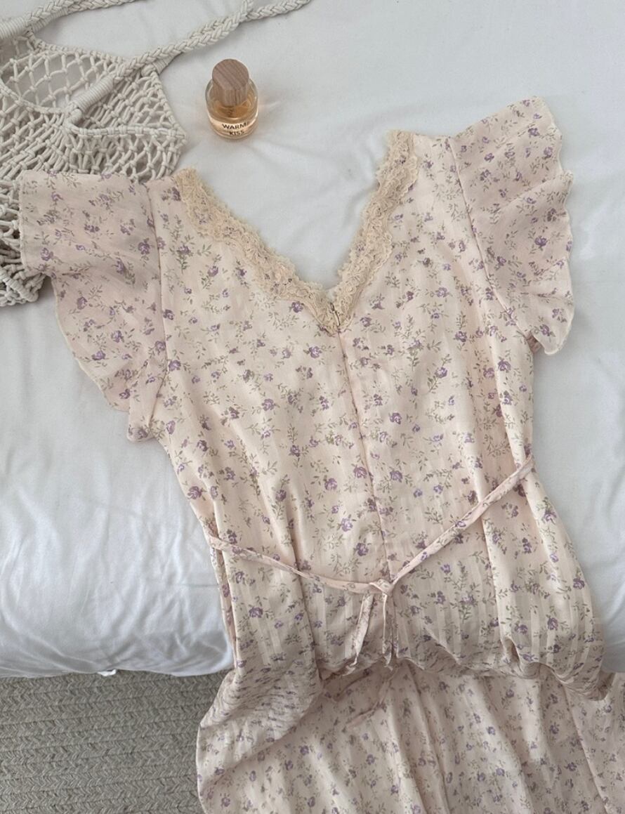 ナチュラル 小花柄 フリル ワンピース <F-13228>